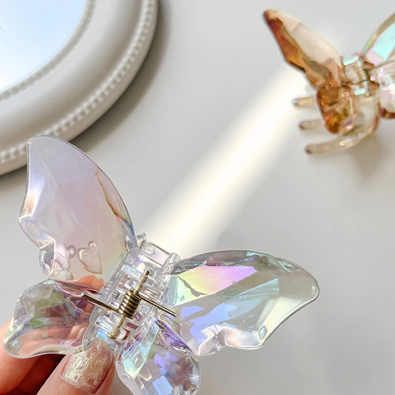 Color: GRAY - 1Pc Sweet Hair Claws Sweet Fairy Butterfly Hairpin Clip Summer Acrylic Styling Tools Barrettes Women Girl Hair Accessories