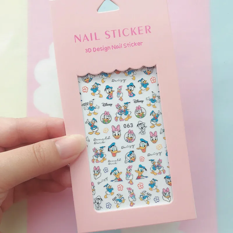 Color: GRAY - 1PCS Hello Kitty 3D Nail Stickers Press on Nails Mickey Mouse Donald Duck Stitch Cartoon Stickers Nail Art Decoration