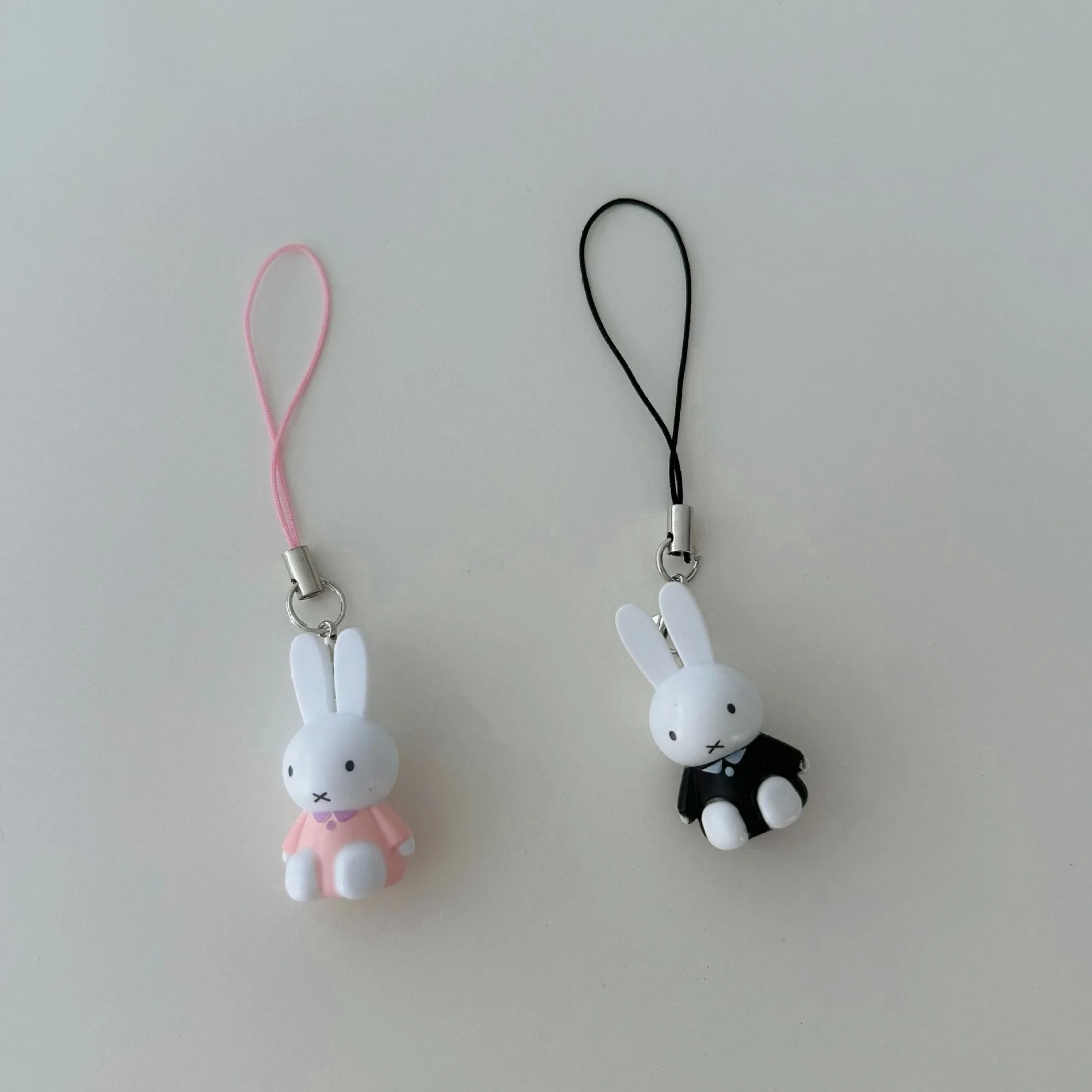 Color: GRAY - Kawaii Miffy Key Chain Cartoon Cute Backpack Pendant Ornaments Mobile Phone Chain Christmas Gift
