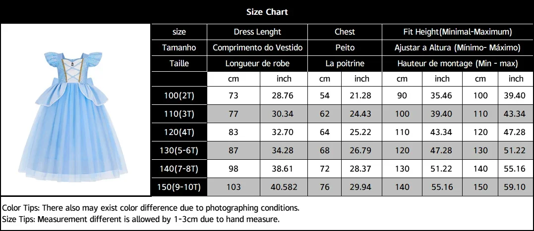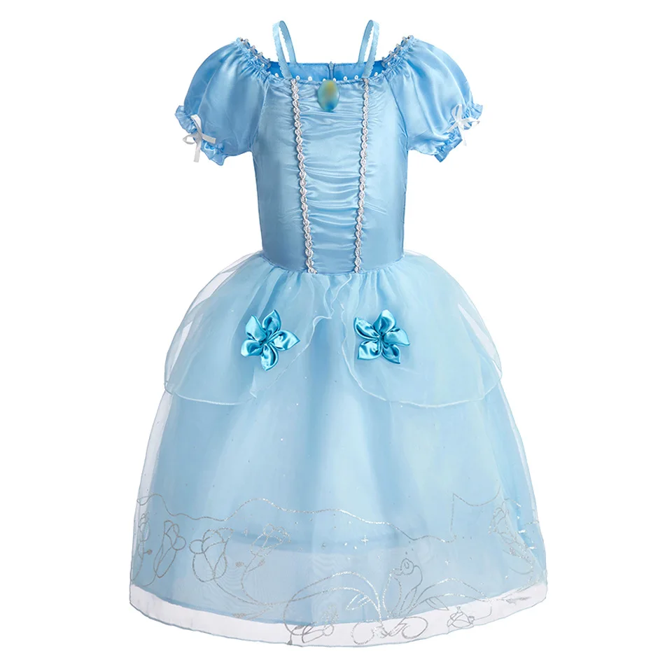 Color: GRAY, Kid Size: 13 - Disney Deluxe Elegant Rapunzel Princess Ball Gown Fancy Birthday Party Dress Cinderella Vestidos Costume Play Carnival Apparel