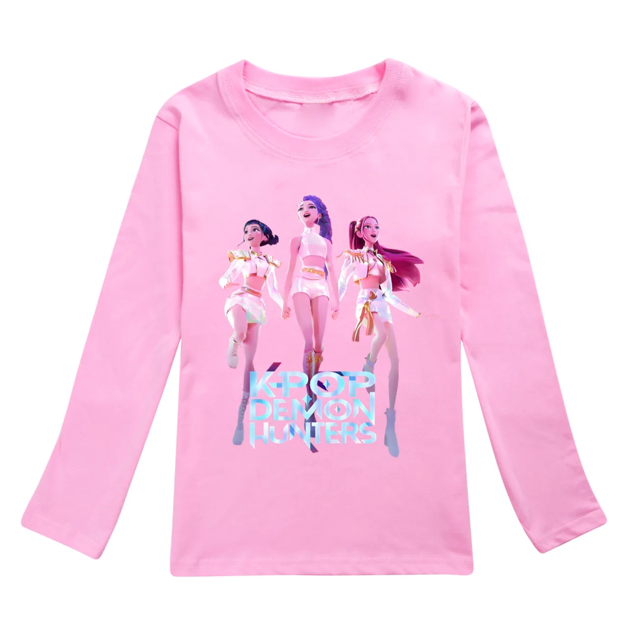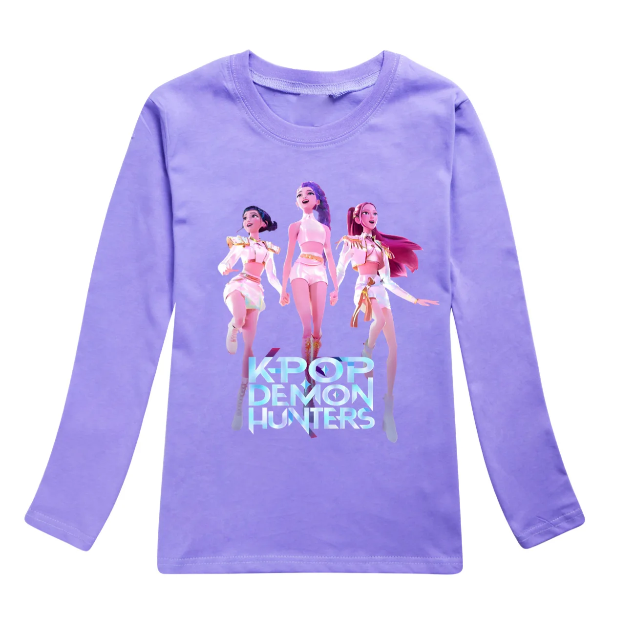Color: GRAY, Kid Size: 8 - KPop Demon Hunters Huntrix Tshirt Kids Clothes Teenage Boys O-Neck Cartoon Casual T-shirts Girls Long Sleeve Tops Child Clothing