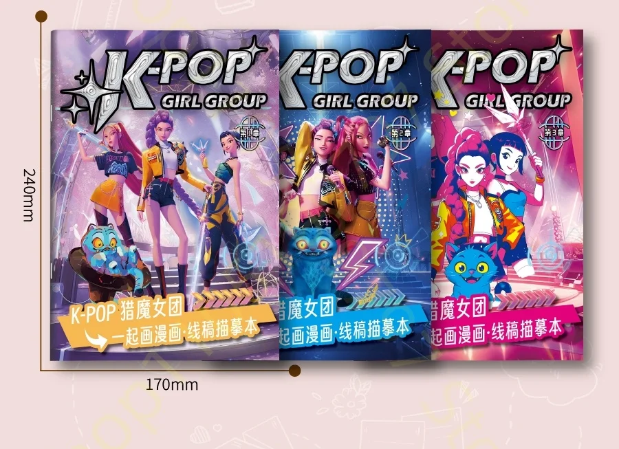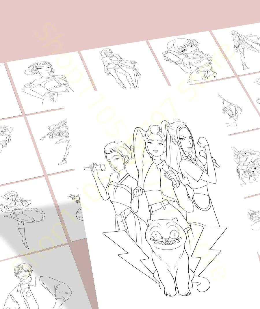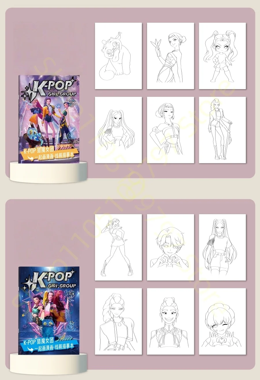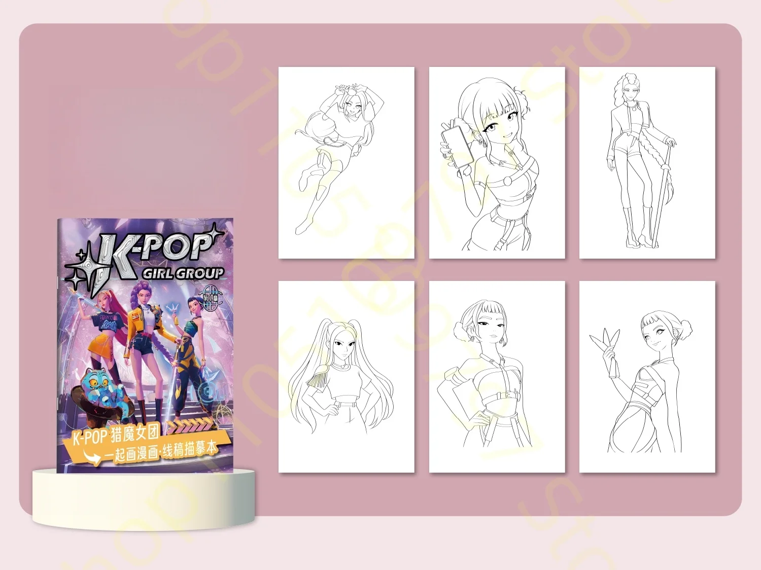 Color: GRAY - KPop Demon Hunter Coloring Books Anime Cartoon Line Drawing Children's Sketch Picture Book Kid's Birthday Gift / Christmas Gift