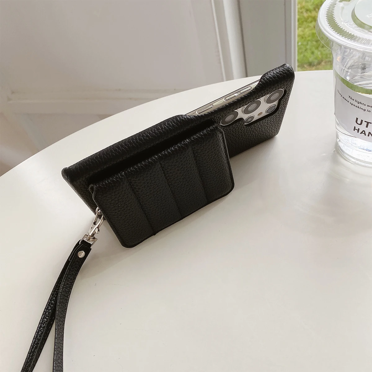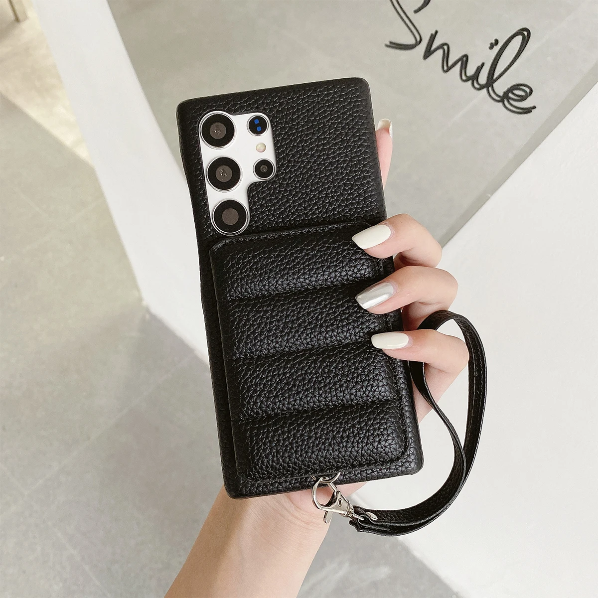 Color: GRAY, Material: Neoprene - Luxury Lanyard Wallet Case For Samsung Galaxy S21 FE S22 S23 Plus Note 20 Ultra A52 A53 A54 5G Lichee Pattern Leather Cover