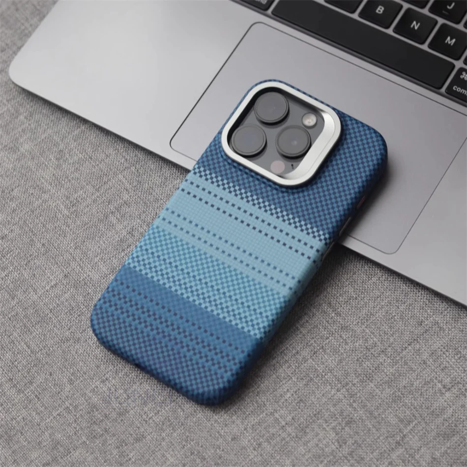Color: GRAY, Material: Nylon - Luxury Magnetic Stand Metal Lens Relief Carbon Fibre Pattern For Magsafe Case For iPhone 15 14 13 Pro Max Shockproof Back Cover