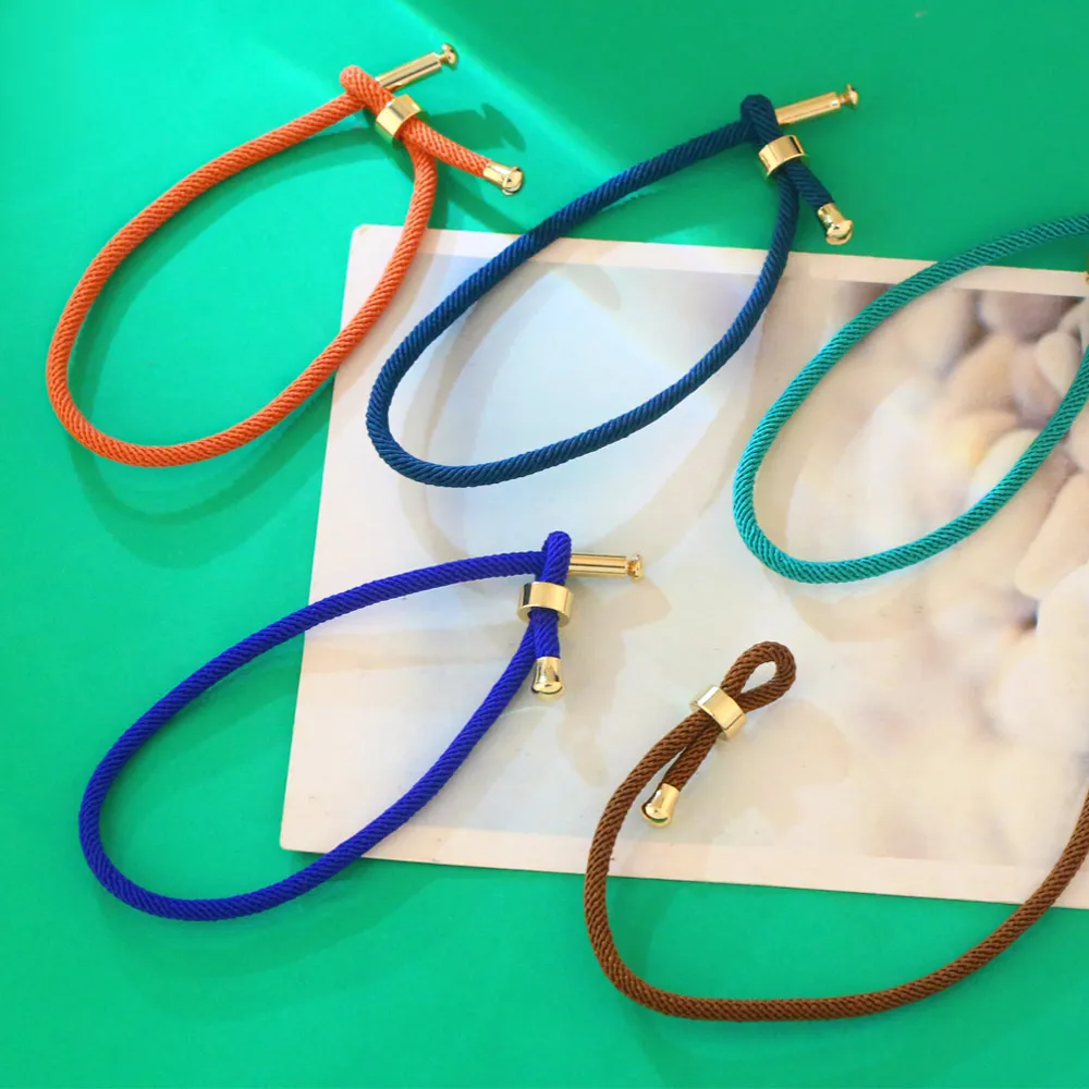 Color: GRAY - OCESRIO Colorful Adjustable Cotton Red Rope Bracelet Chain Gold Plated Copper DIY Components for Jewelry Making cana002
