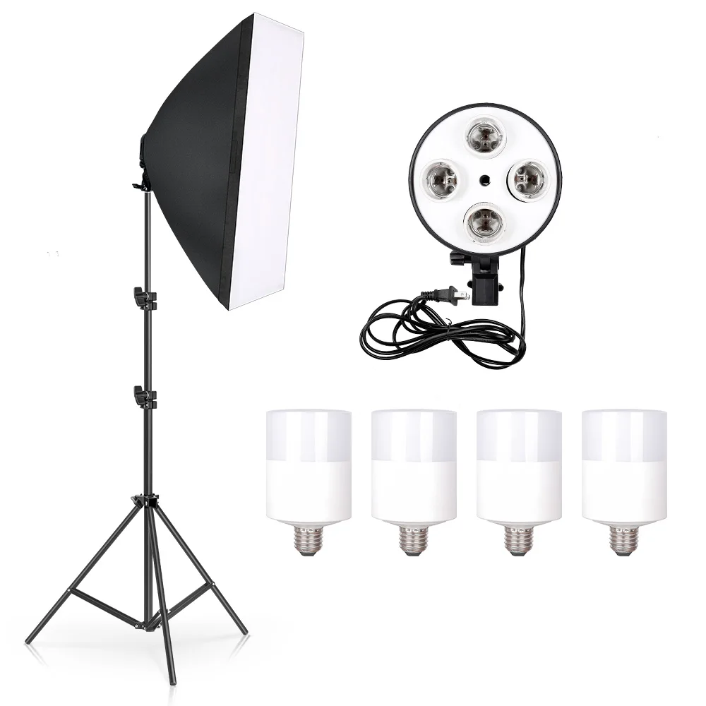 Color: GRAY, Ships From: CHINA - Photo Studio 4pc LED 15W Softbox Kit Photographic Lighting Kit Camera Photo Accessories 1pc Light Stand 1pc Softbox for Shooting