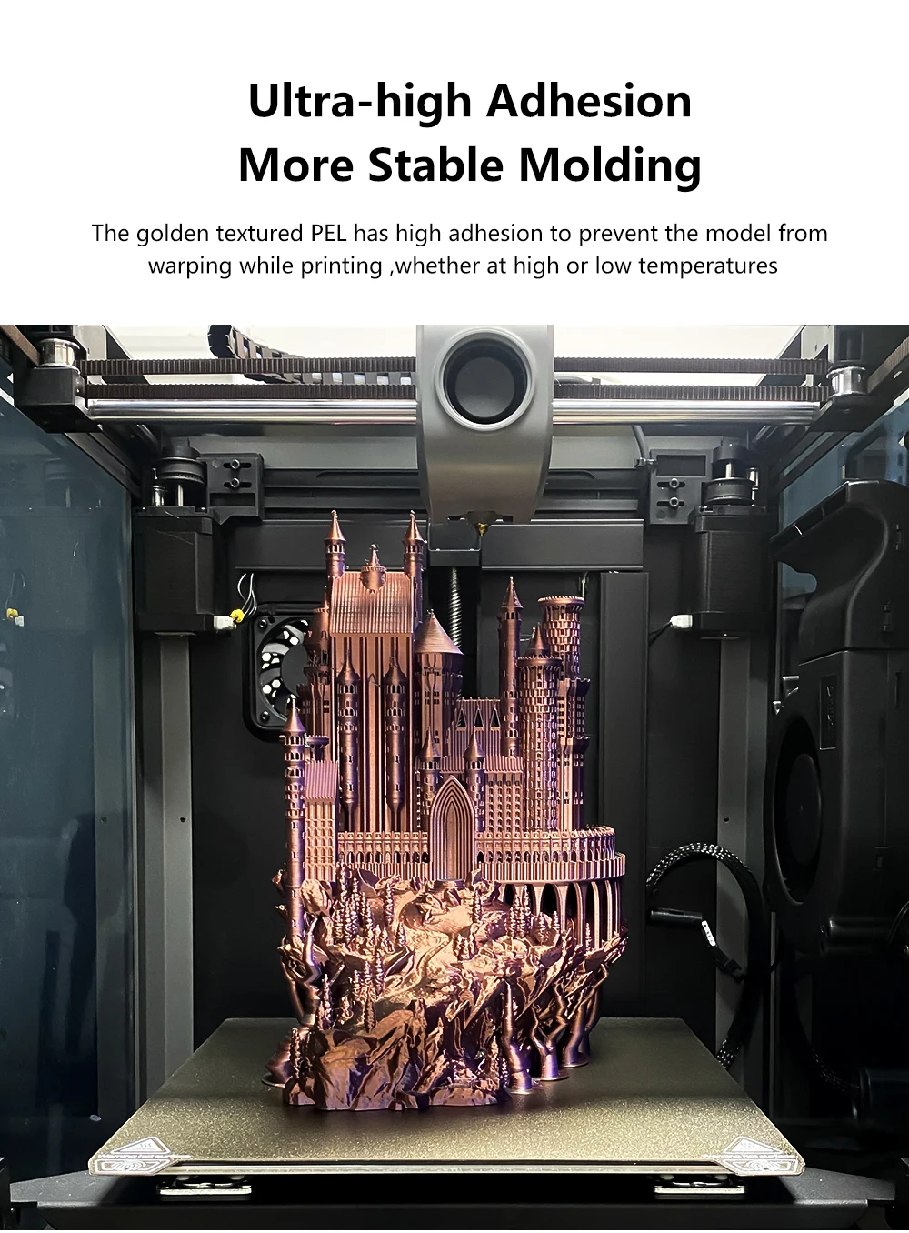 Start printing in PET and PEO sheet, the temperature of the hot bed can be set to 40°C-80°C according to the actual situation (PEO/PET do not exceed 80°C).