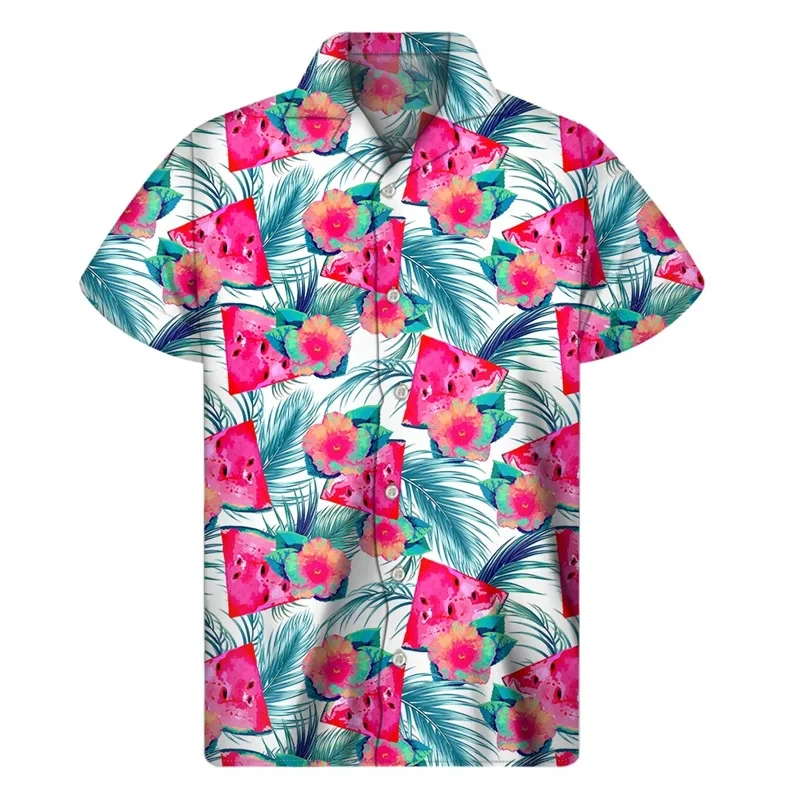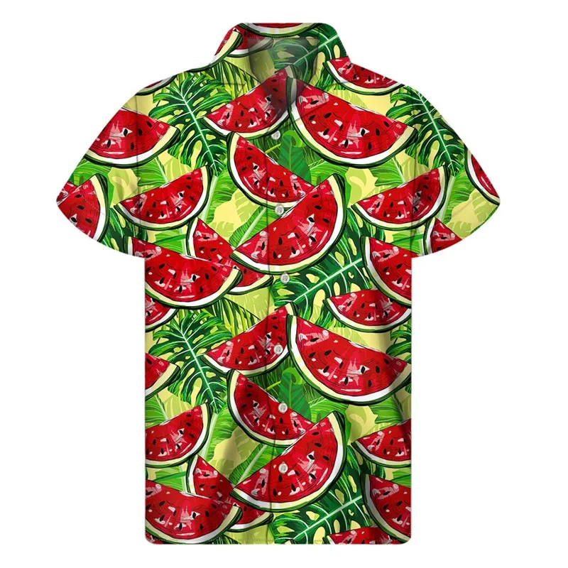 Color: GRAY, Size: 5XL - Tropical Watermelon Graphic Hawaiian Shirt Summer Street Short Sleeves 3d Printed Fruits Button Shirts Men Clothes Lapel Blouse