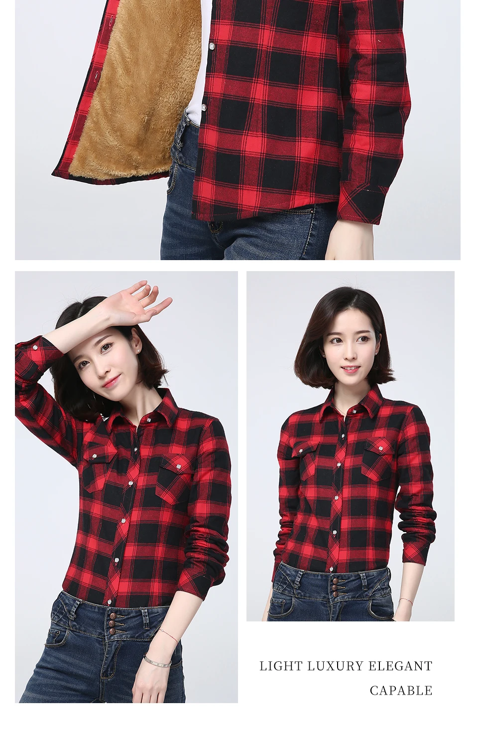 Color: GRAY, Size: L - 2025 Winter New Women's Warm Plaid Shirt Coat Casual Fleece Velvet Plus Thicke Jacket Tops College Style Woman Clothes Outerwear