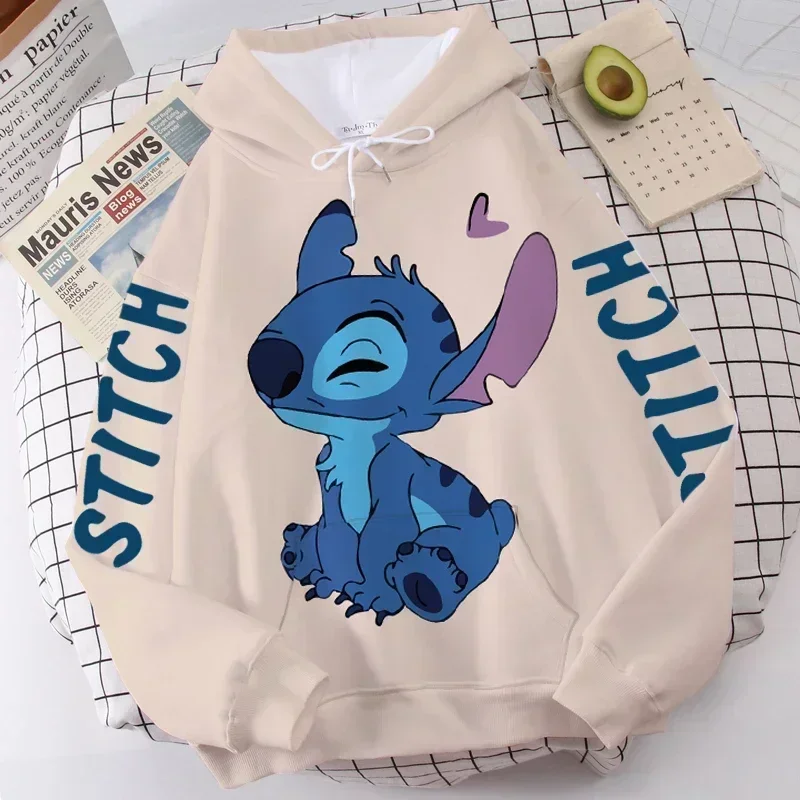 Color: GRAY, Size: L - Disney Hoodie Fashion Stitch Angel Monster Letter Cartoon Sweatshirt Pullover Cute Harajuku Unisex Women's Pocket Top