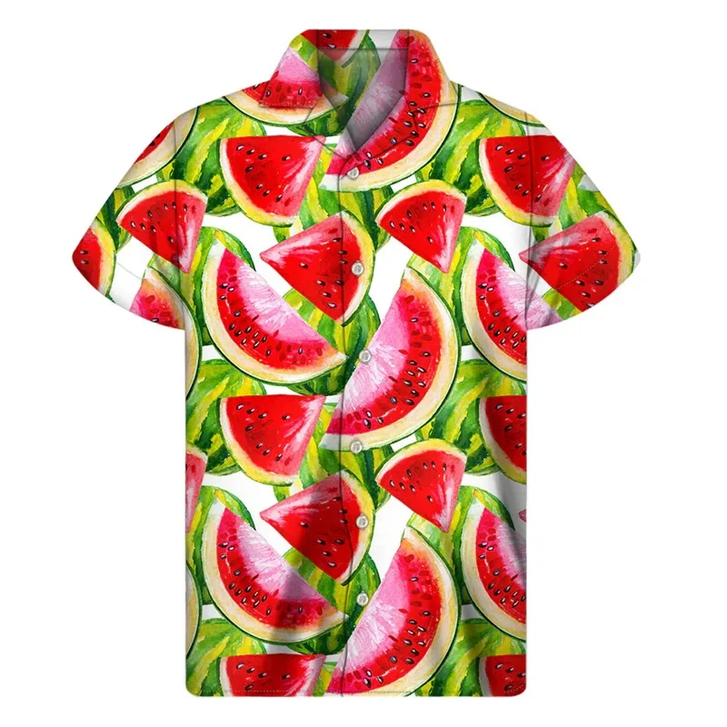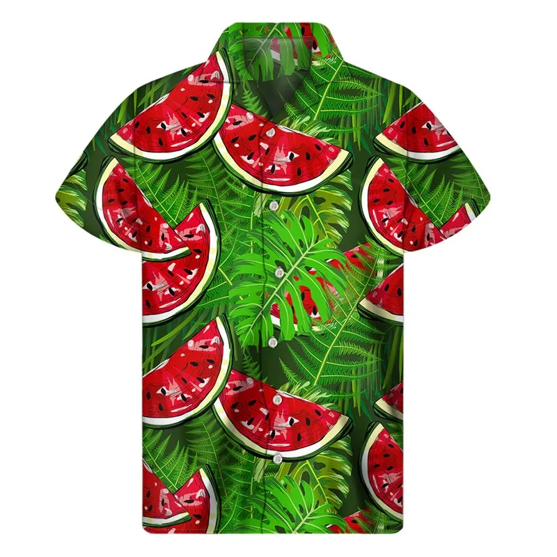 Color: GRAY, Size: L - Tropical Watermelon Graphic Hawaiian Shirt Summer Street Short Sleeves 3d Printed Fruits Button Shirts Men Clothes Lapel Blouse