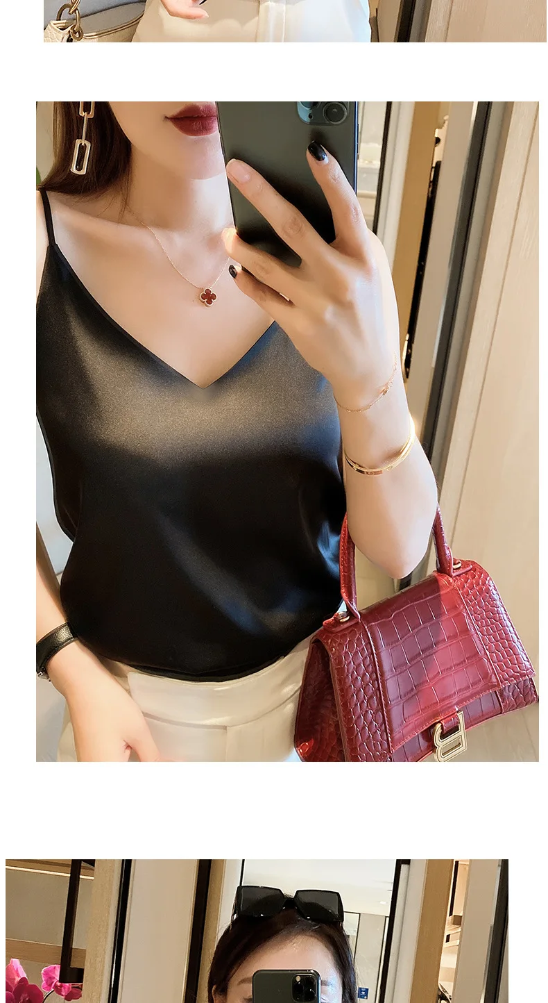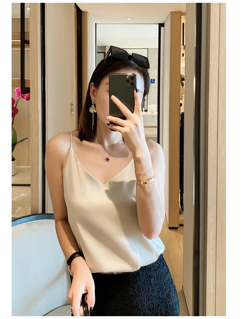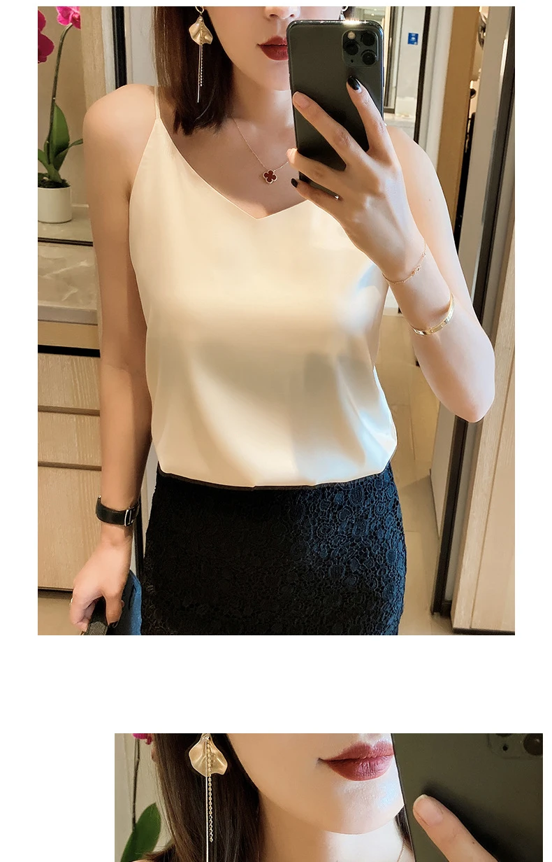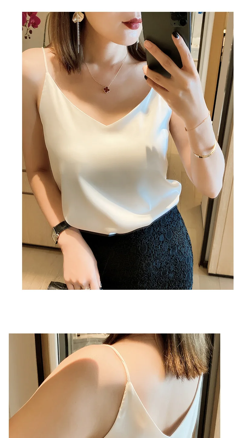 Color: GRAY, Size: M - 2024 Summer Camisole Slim Vest Sexy Women Sleeveless V-Neck Gray Tee Tank Tops Female Solid Black/White Korean Crop Tops Y2k
