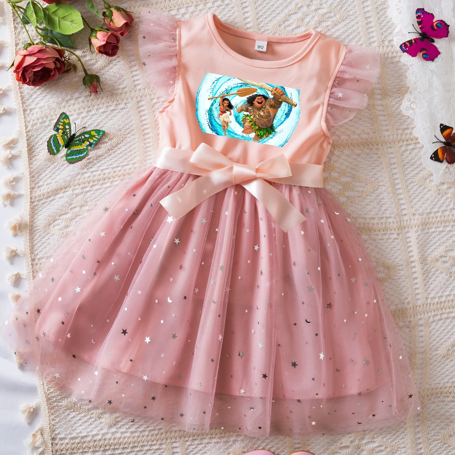 Color: GRAY, Size: XL - Moana Summer Toddler Girl Dress Princess Star Baby Girls Clothes Tulle Tutu Dress for Children Party Dress 2-6Y