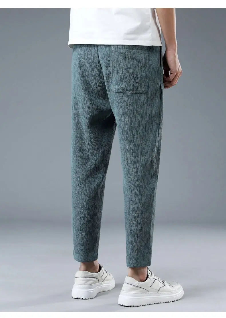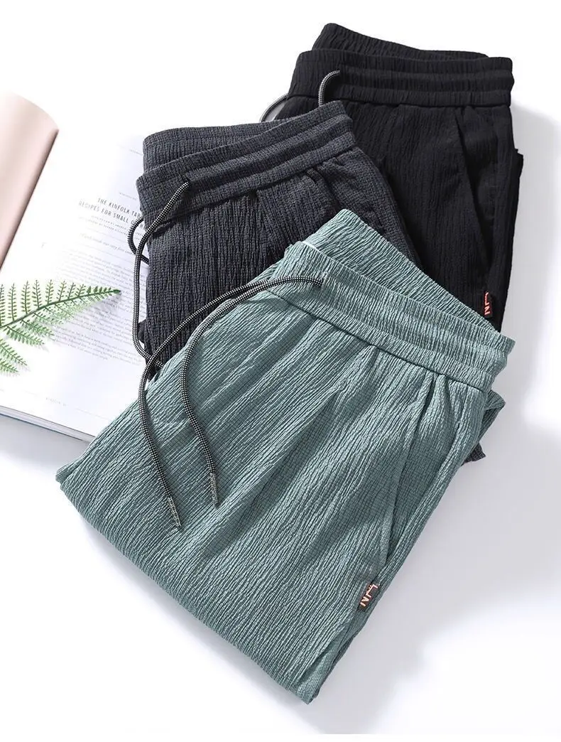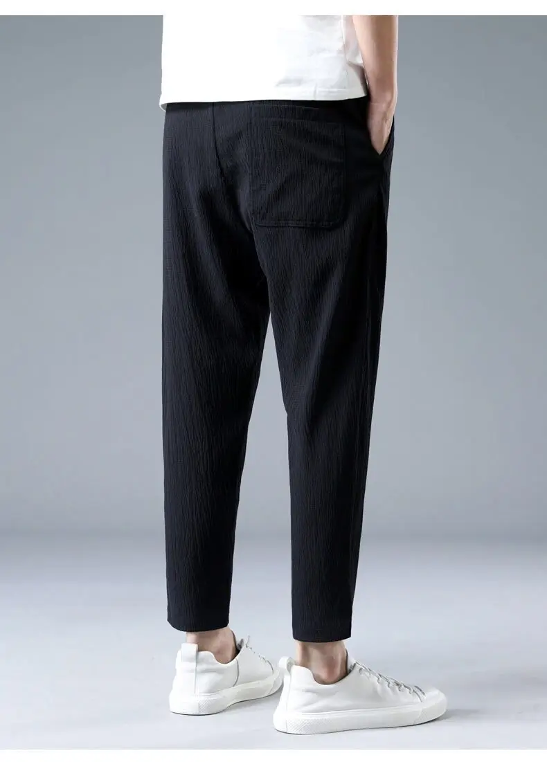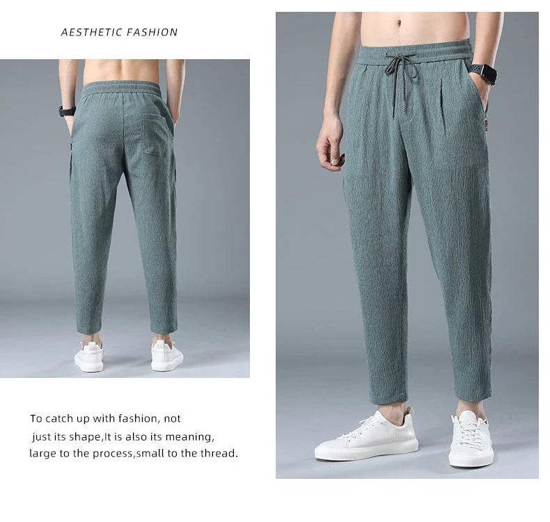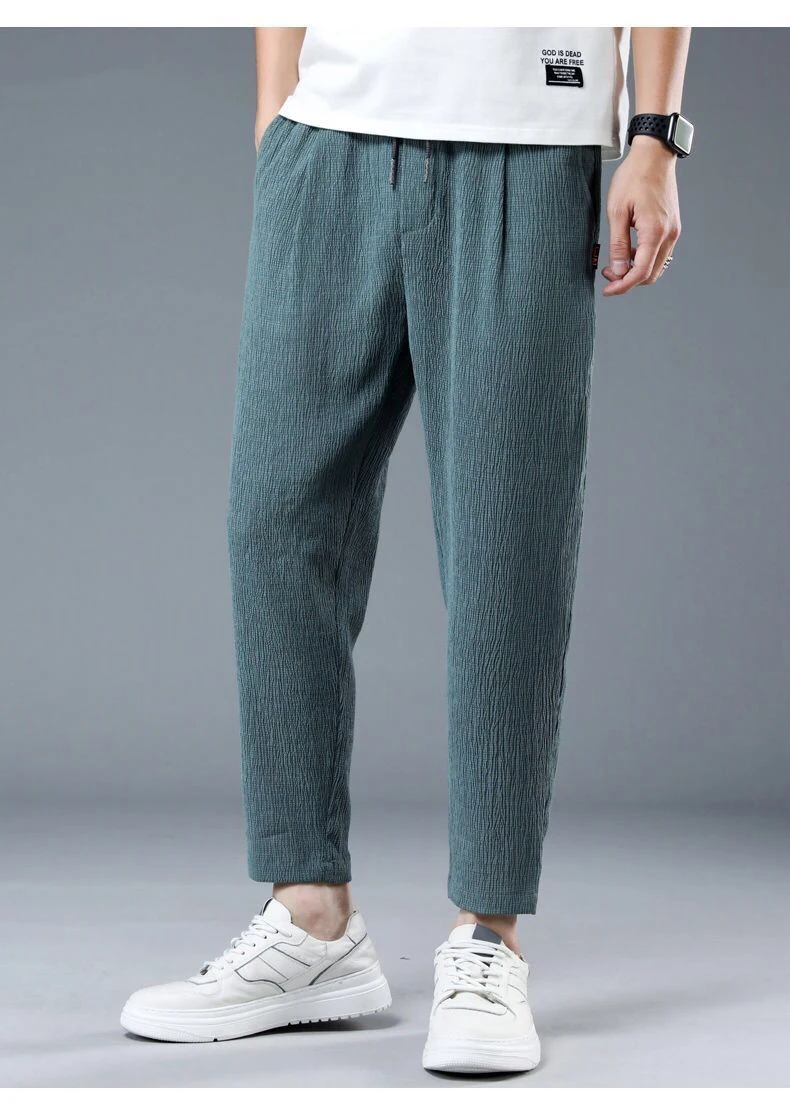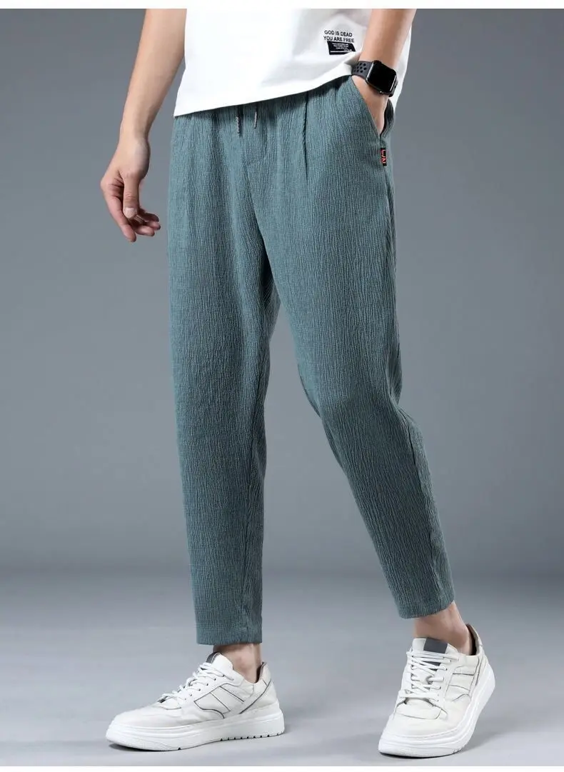 Ice Slik Man Pants Casual Cotton Linen Sweatpants Male Quick-dry Ankle-length Harem trousers 2023 Streetwear Fashion