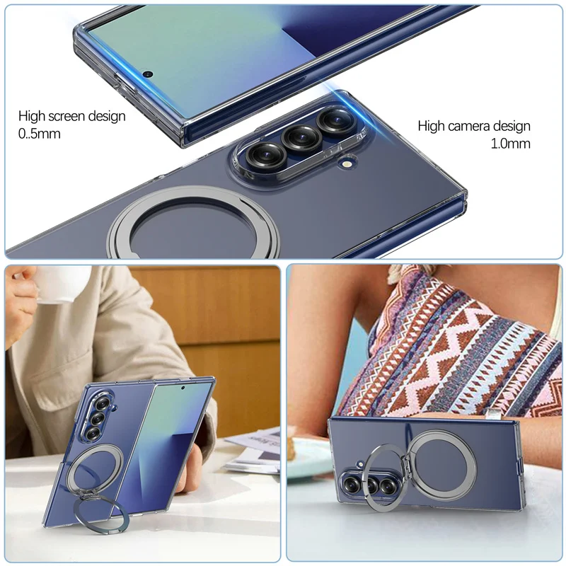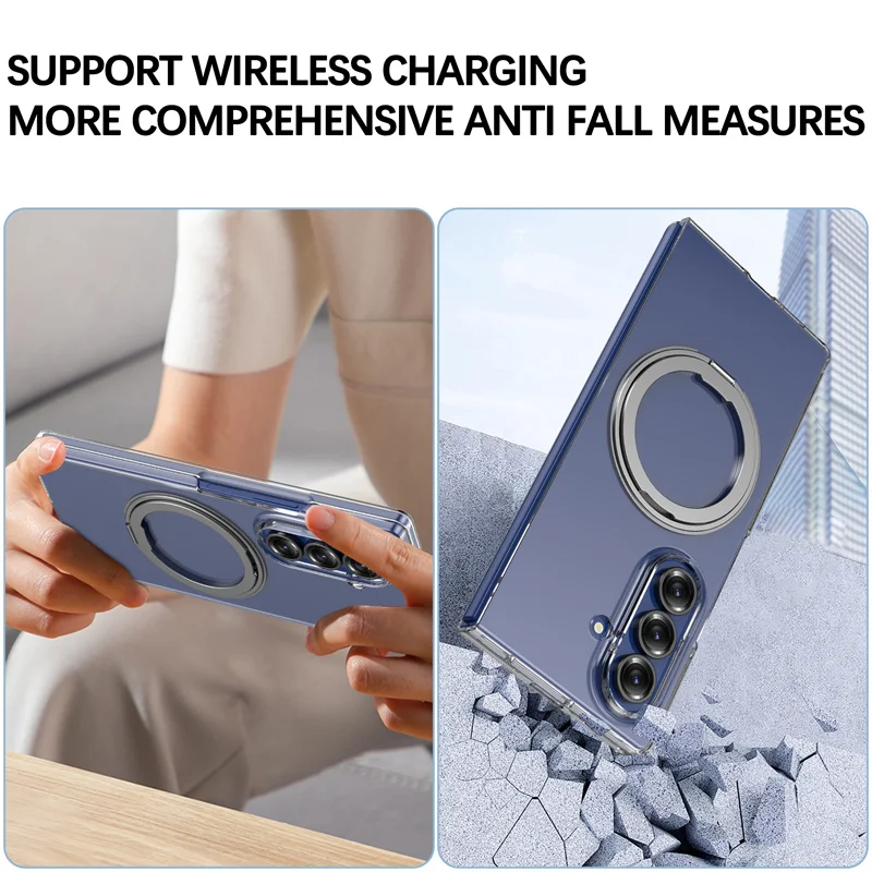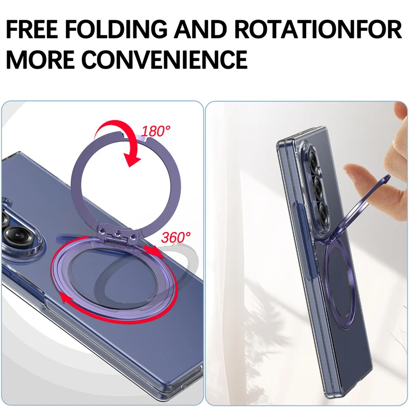 Color: green, Compatibility by Model: Galaxy Z Fold7 - 360?° Rotating Magnetic Holder Phone Case For Samsung Galaxy Z Fold 7 Magsafe Wireless Charging Transparent Hard Shockproof Cover