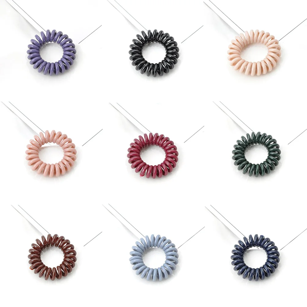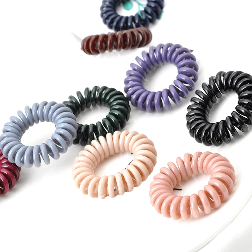 Color: green - High Elasticity Telephone Coil Hairbands Women Spiral Hair Ties Girl Hair Ring Rope Solid Color Hair Accessories Ponytail Holder