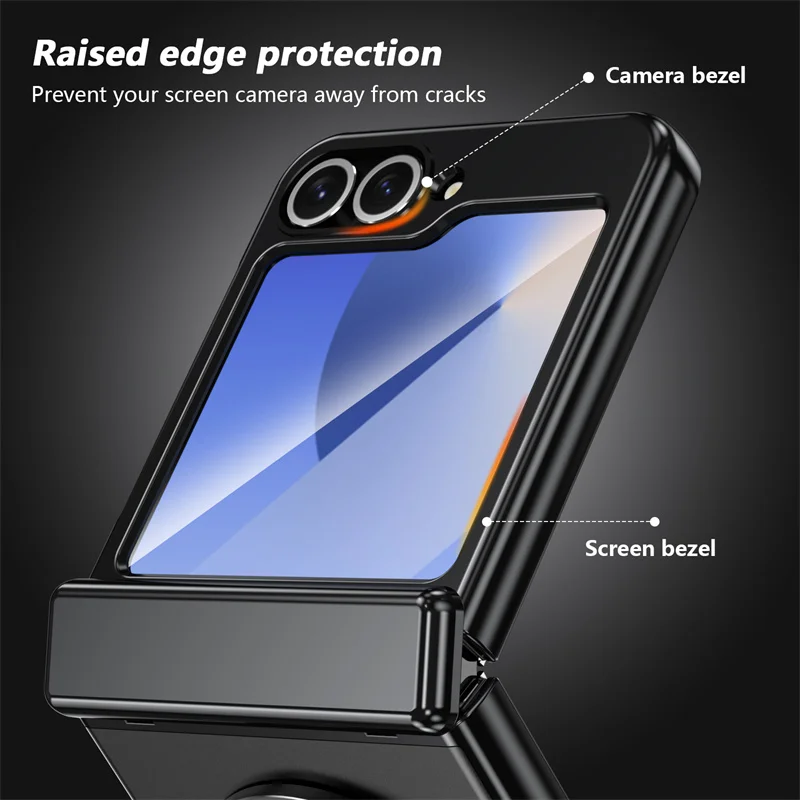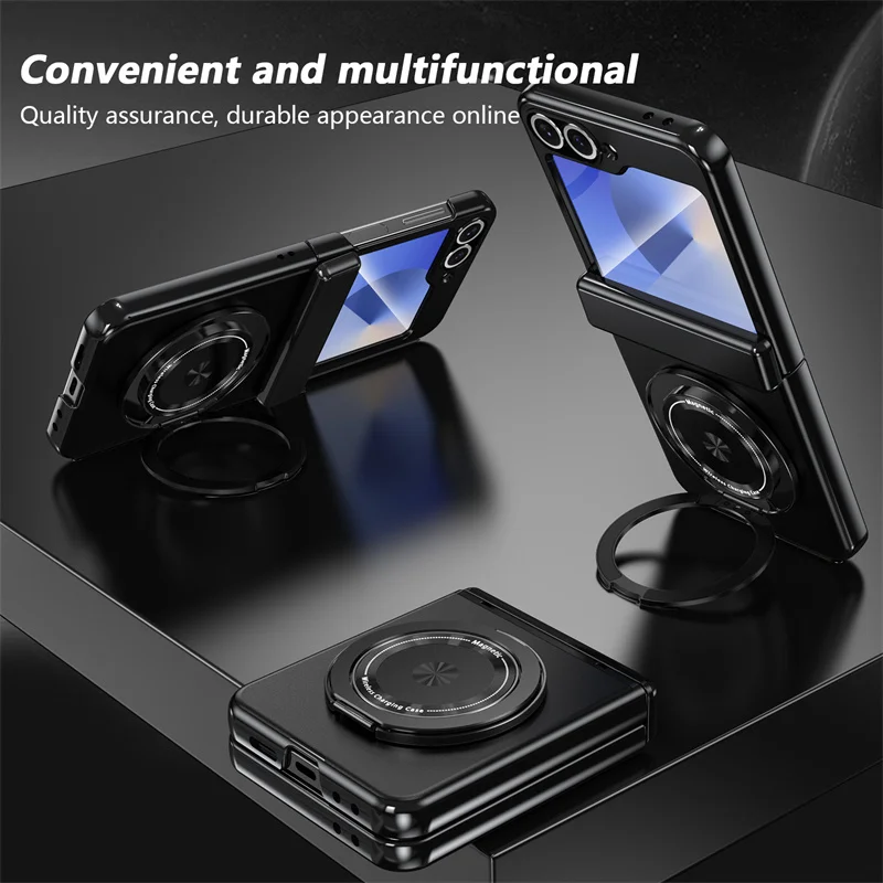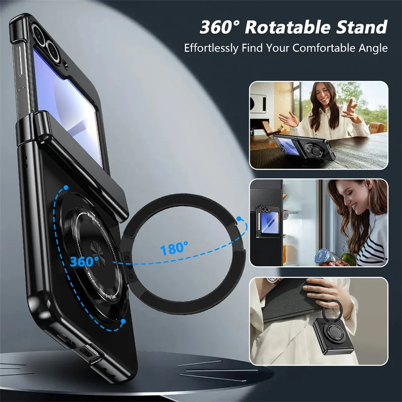 Color: green, Material: ABS - 360?° Magnetic Rotate Holder Ring Phone Case For Samsung Galaxy Z Flip 6 5 4 Flip6 Flip5 Flip4 Flip3 Hard Shell Protection Cover