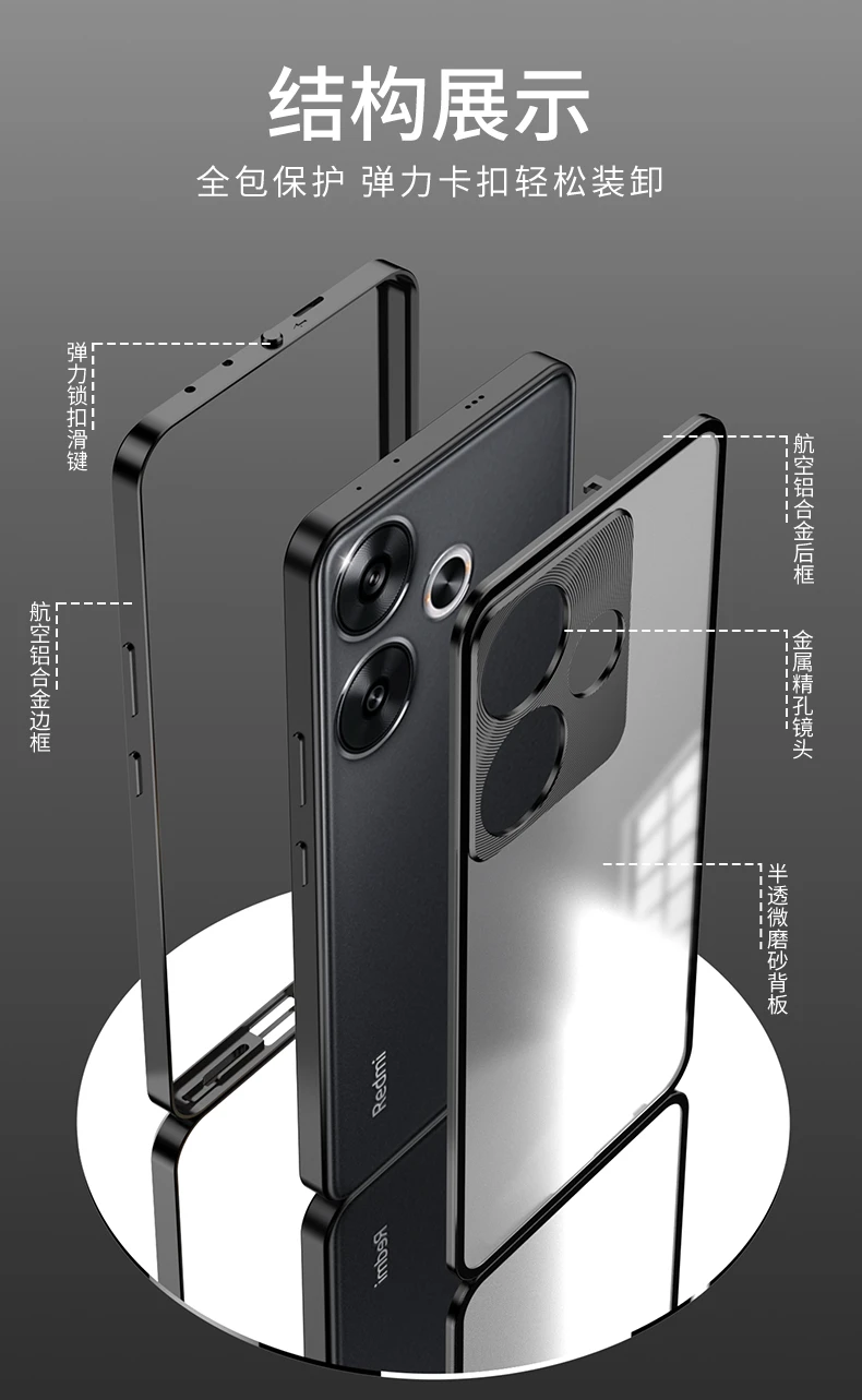 Aluminium Alloy Metal Frame Case For Redmi Turbo 3 Case Matte transparent Acrylic Back Cover For Xiaomi Redmi Turbo3 5G Bumper