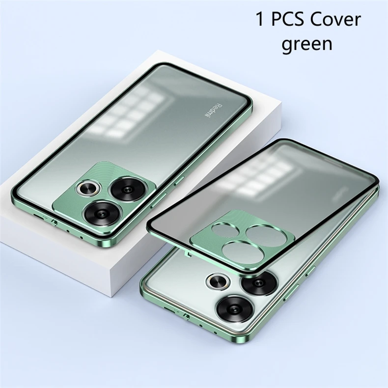 Color: Green, Material: ABS - Aluminium Alloy Metal Frame Case For Poco F6 Case Matte transparent Acrylic Back Cover For Xiaomi POCO F6 5G Redmi Turbo3 Bumper