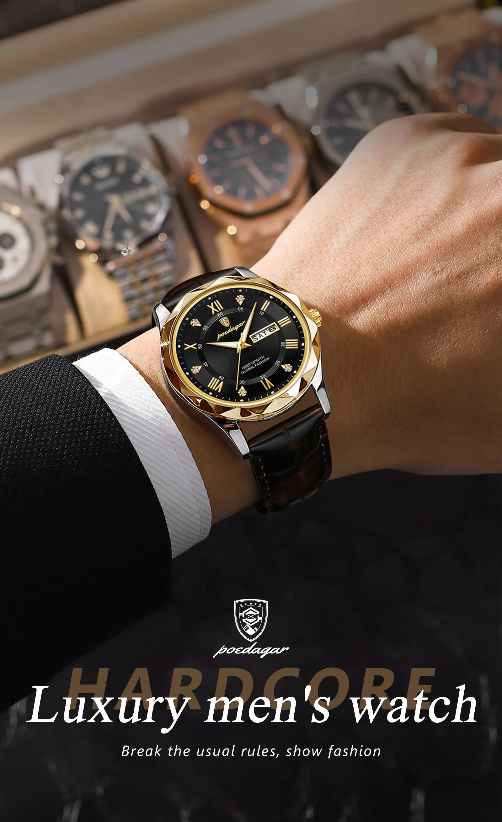 Color: green - POEDAGAR Luxury Business Man Wristwatch Waterproof Luminous Date Week Men Watch For Men Quartz Clock Leather Men's Watches reloj