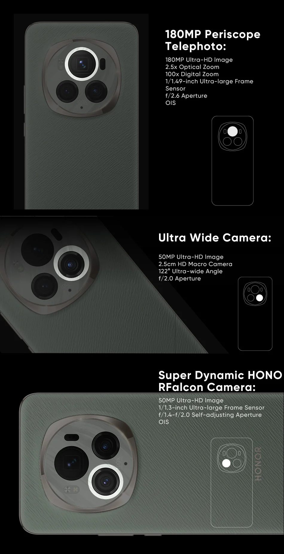 Rear Camera:Â 50MP + 50MP + 180MP, Triple Cameras