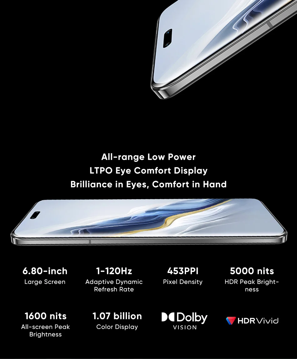 Screen:6.8" 120Hz LTPO OLED Screen, HDR10+ 1312 x 2848 pixels, (~391 ppi density)