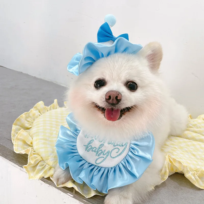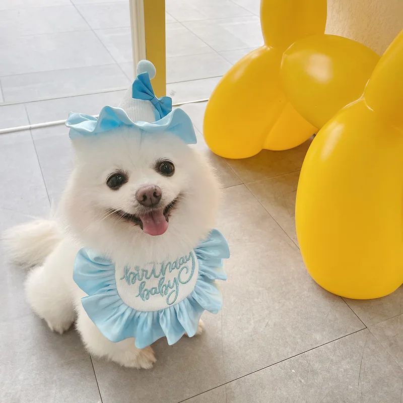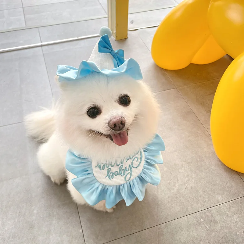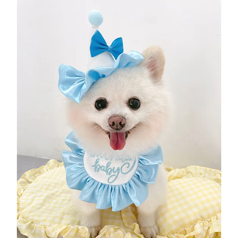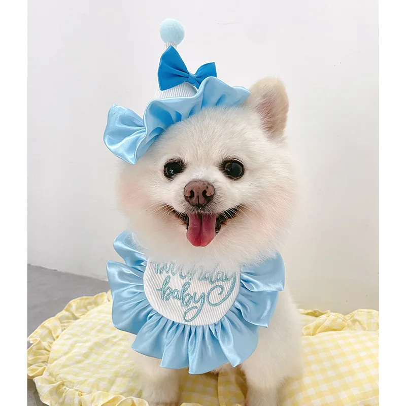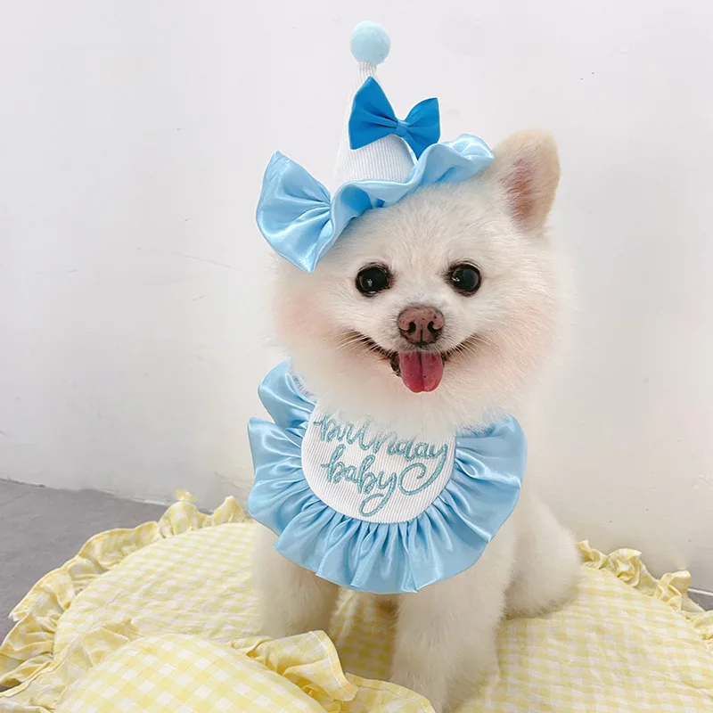Color: Green, Ships From: CHINA - Pet Dog Birthday Party Dress hat Caps and Scarf Cute Hat Bib Cat Saliva Towel Funny Photography Props Gift Pet puppy Costume