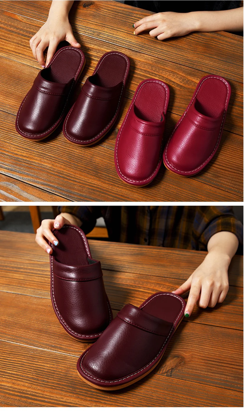 Color: green, Shoe Size: 8 - Mens Bedroom Leather Slippers Unisex Black Home Shoes Big Size 47 48 Man's Slippers Indoor Comfy Males Slides Family Flats Shoes