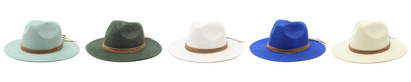 Color: green, Size: M - Big Size 60CM New Straw Hat 7cm Brim Summer Cooling Beach Sun Hat Outdoor Party Panama Jazz Hat Sombreros De Mujer