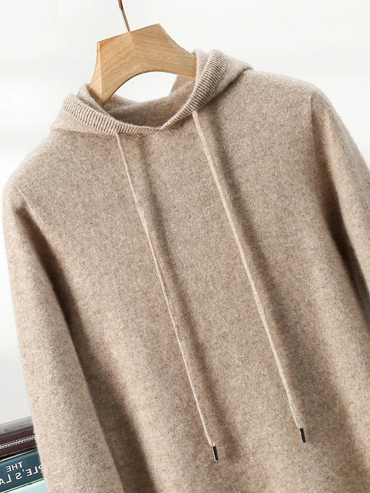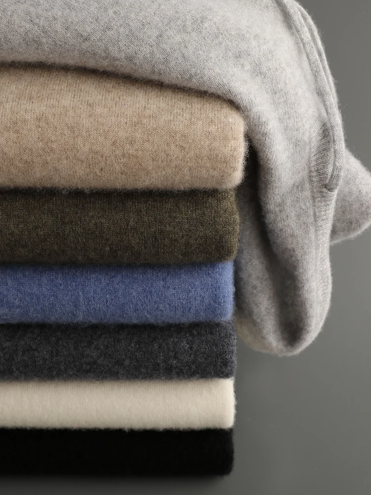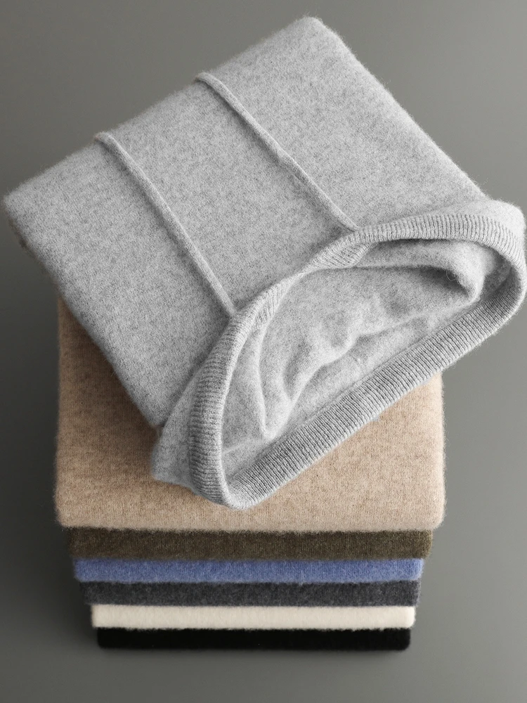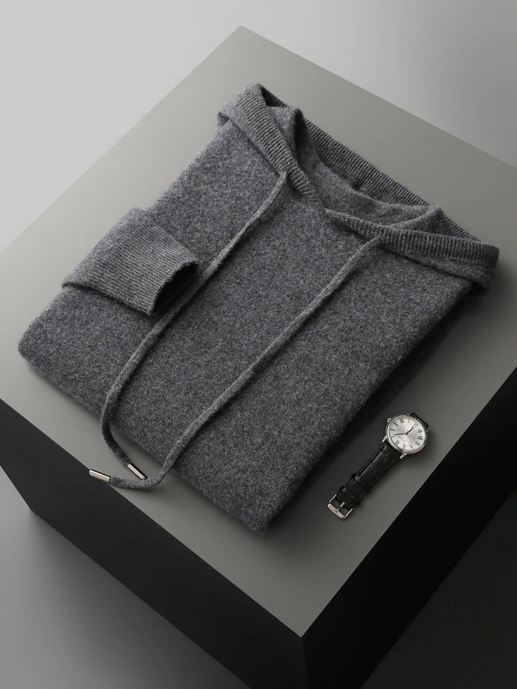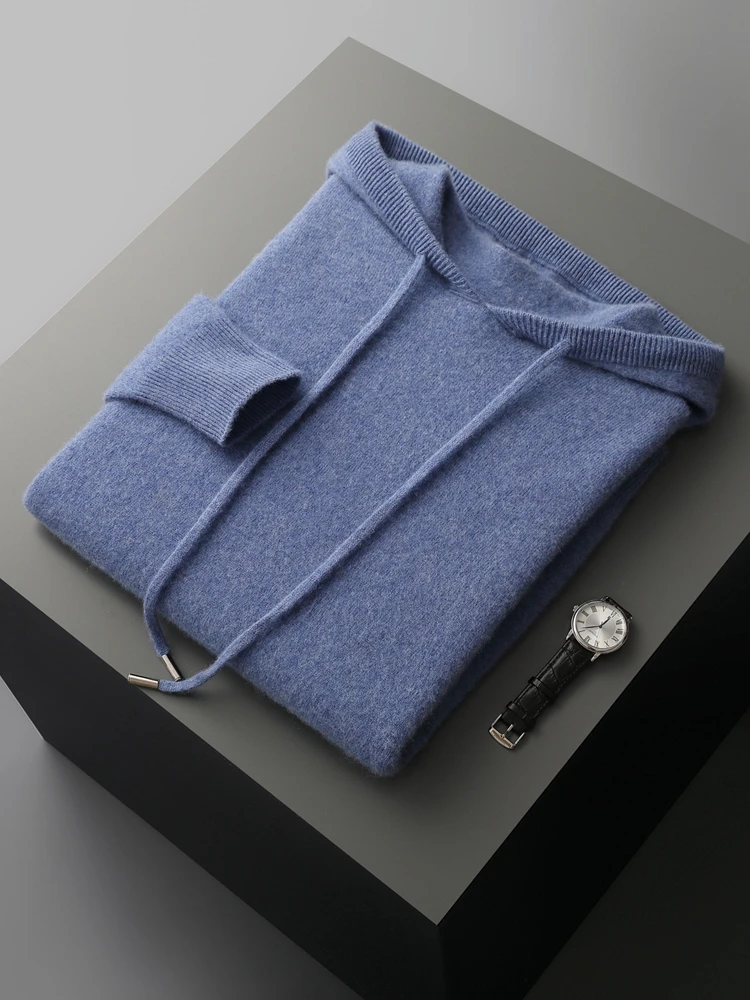 Color: green, Size: XXL - MEETCC Luxury Men Cashmere Hooded Pullover Thick Warm Hoodie Sweater Autumn Winter 100% Cashmere Knitwear Quality Jumpers Tops
