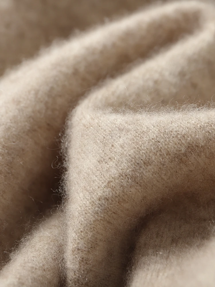Fiber characteristics:The fiber diameter of cashmere is smaller than wool, the texture is more delicate and soft, and the scale structure of cashmere is smaller, making its thermal performance better than wool. Wool fibers are relatively thick, hard in texture, and not as warm as cashmere.