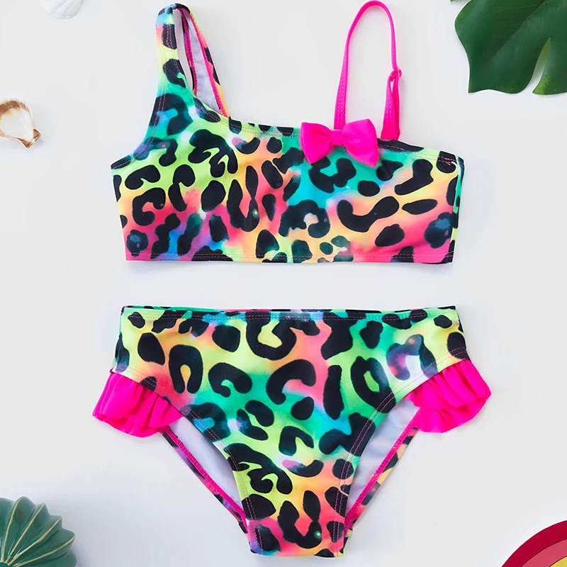 Color: green, Size: XXS - Lilo Stitch Gilrs Bow Bikini Set Trendy Two-Piece Swimsuits for Summer Stylish Beachwear Pool Fashion Bathing Suits 3-12Y