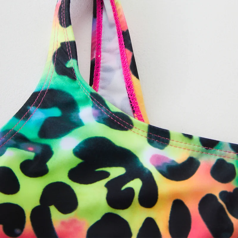 One-piece girls swimsuit, fish scales Designed with a cute ruffle hips.