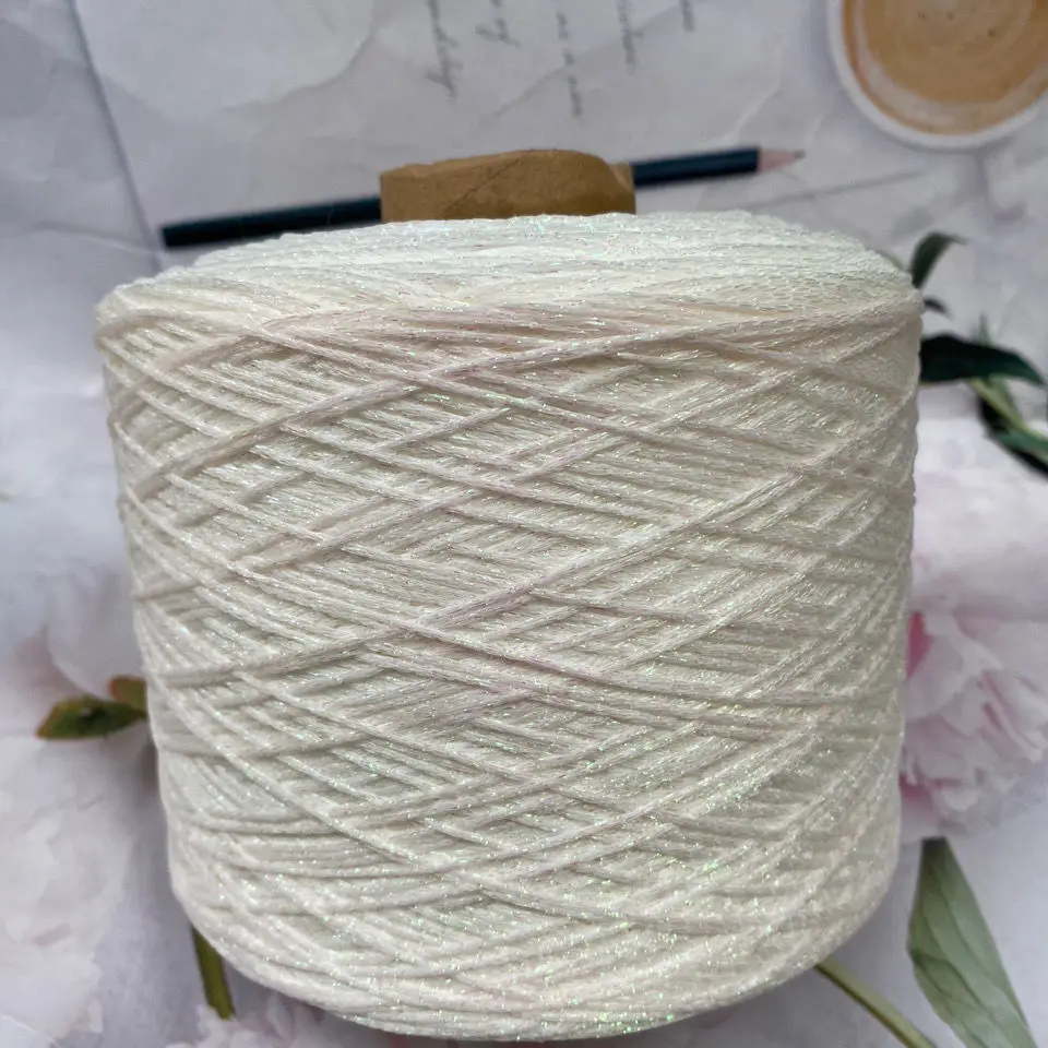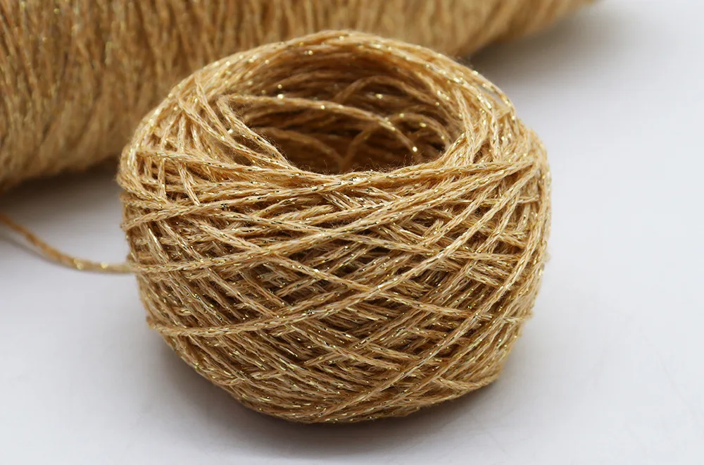 Color: Ivory - 50g/ball Colorful Unique Gold Silver Wool Cotton Metallic Yarn Skein Crochet Thread Glitter Hand-woven Craft Bag