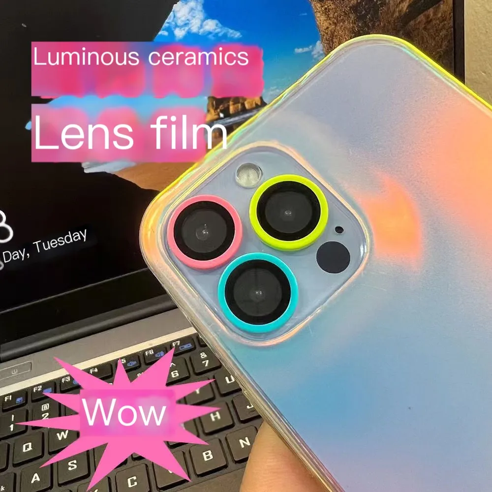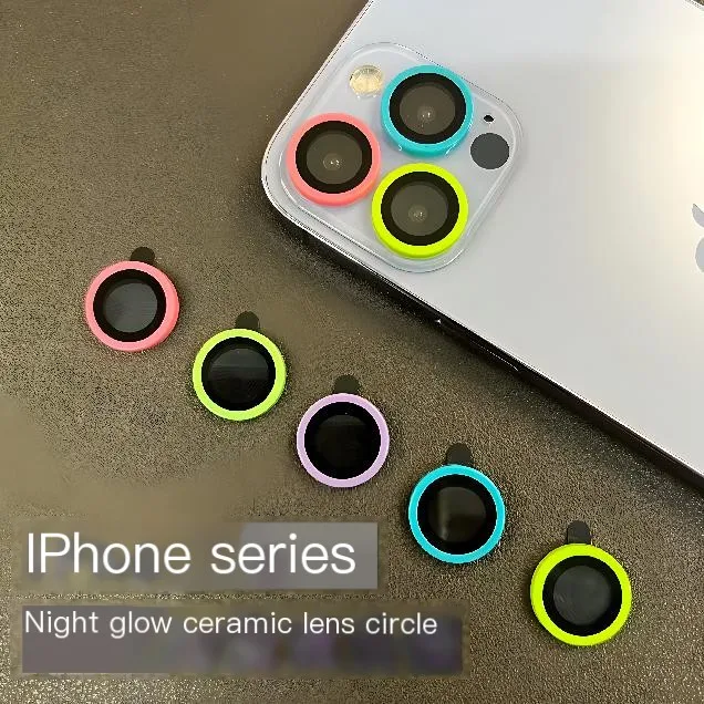 Color: Ivory, Bundle: Bundle 9, Material: Tempered Glass, Ships From: CHINA - For iPhone 15 14 13 12 Pro Max 12 11 mini Luminous Camera Protector Ceramic Lens Ring Tempered Glass Back lens Cap Cover