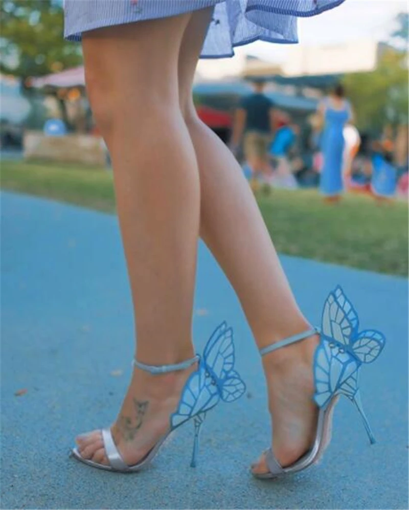 Color: Ivory, Shoe Size: 9 - Women Summer Sandals Fashion Embroidered Satin Butterfly High Heeled Footwear Adjustable Ankle Strap Shoes Women high heels