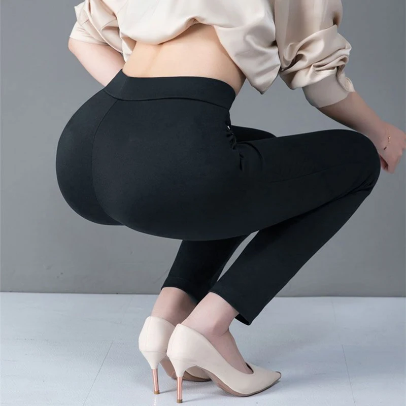 Color: Ivory, Size: L - Thin & Thick Warm Winter Pencil Pants Womens Snow Plush Strench Lady OL SkinnyTrousers Femal Thichen Slim Clothing Leggings