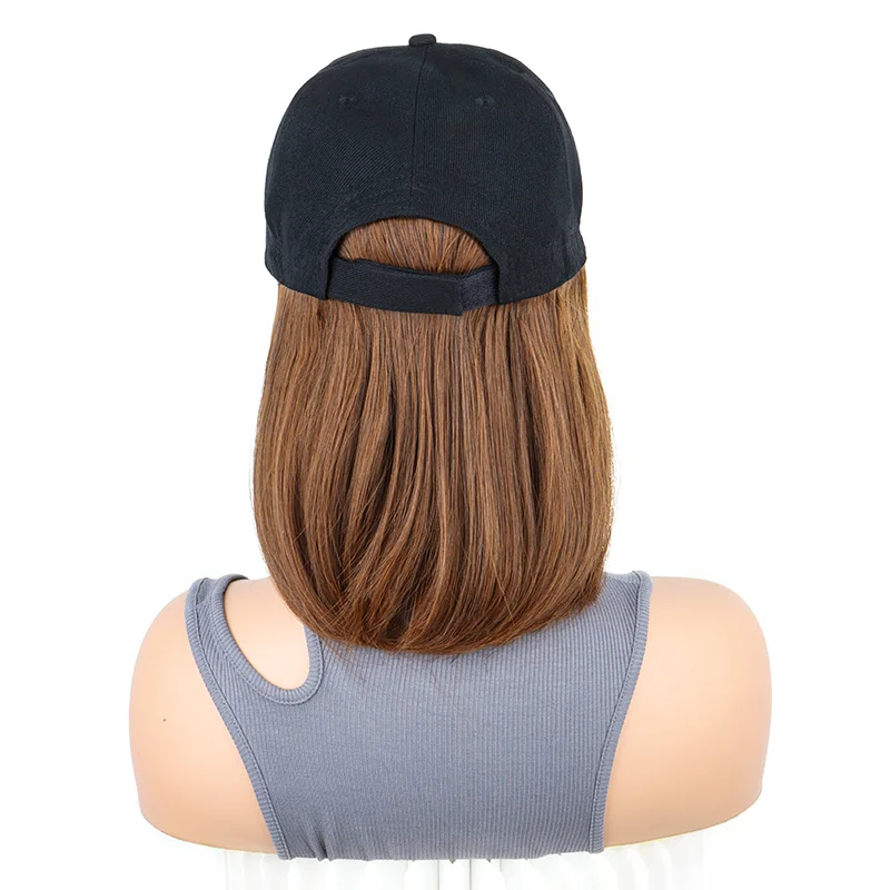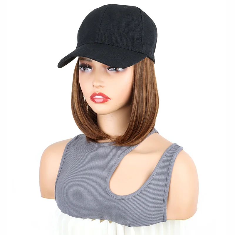 Color: Ivory - Synthetic Short Straight Bobo Hat Wigs Baseball Cap Adjustable Black Brown Hairpiece for Women