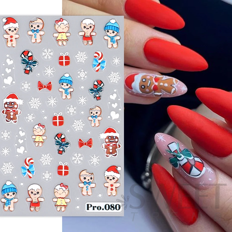 5D Embossed Elk Nail Art Sticker Cute Christmas Winter Santa Claus Snowflake Gingerbread Man Engraved Slider Manicure Decoration