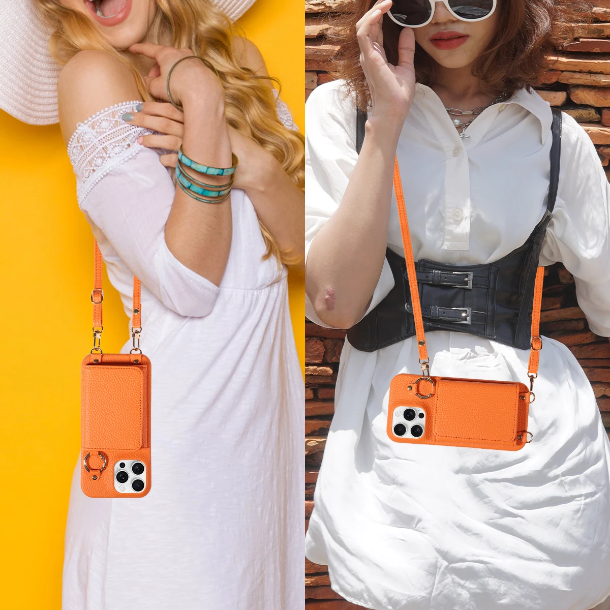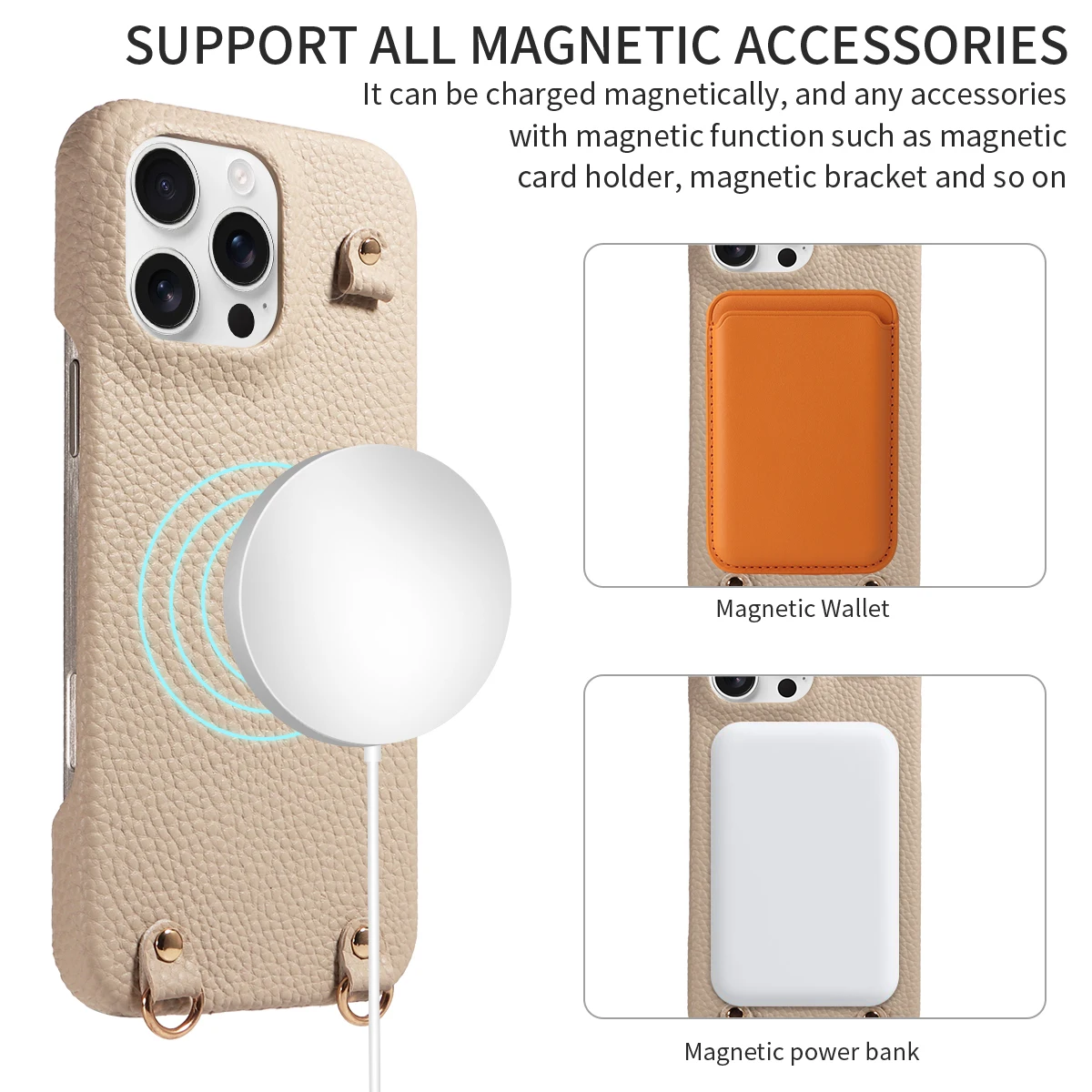 For IPhone16 15 Pro Max 14 13 12 Series PU Leather Magsafe Magnetic Wireless Charging Shockproof Crossbody Wallet Phone Case