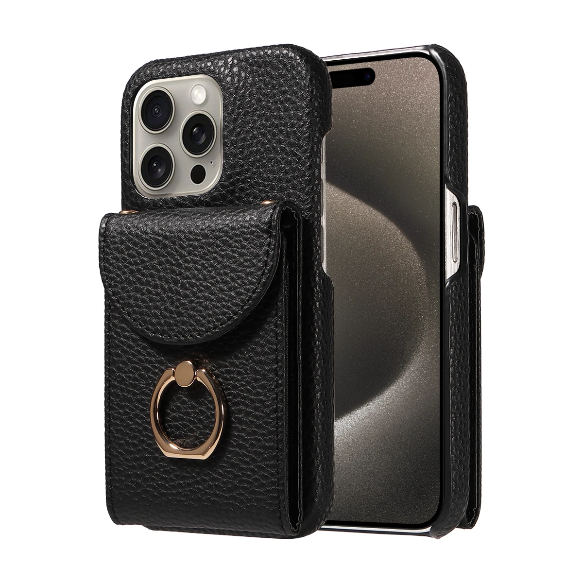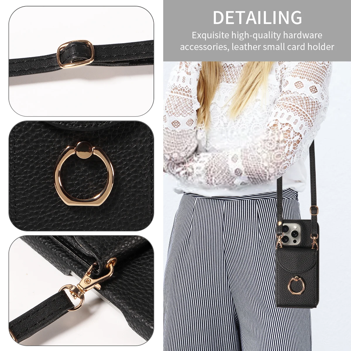 Color: Khaki, Compatible-Phone Models: For iPhone 14 Pro, Bundle: Case & Strap, Material: Artificial Leather - High Quality Ring Stand Lychee Pattern Phone Case for IPhone16promax15 14 13 Crossbody with Lanyard PU Leather Anti-fall Cover