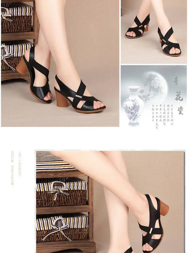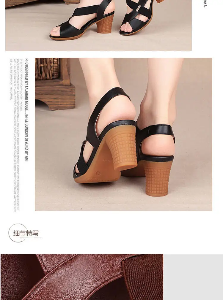 Color: Khaki, Shoe Size: 38 - New Mid-heel Sandals Women Summer Shoes Comfortable High Heels Thick Heel Peep Toe Non-slip Soft Bottom Mother Shoes Slip-On