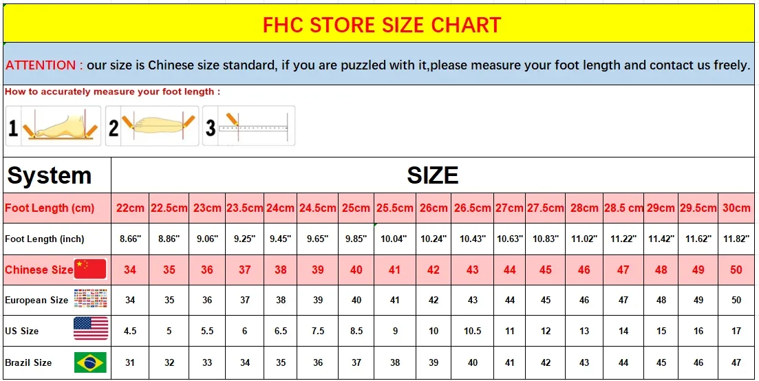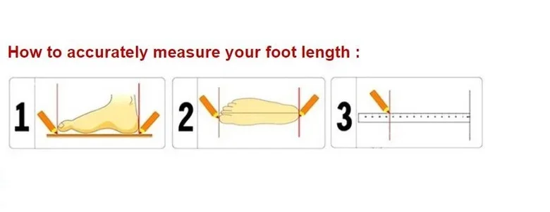 Enviamos la talla China; consulte la longitud de su pie para elegir la talla correcta de acuerdo con la tabla de tallas anterior, si no conoce la longitud de su pie, puede medirlo con el siguiente método.