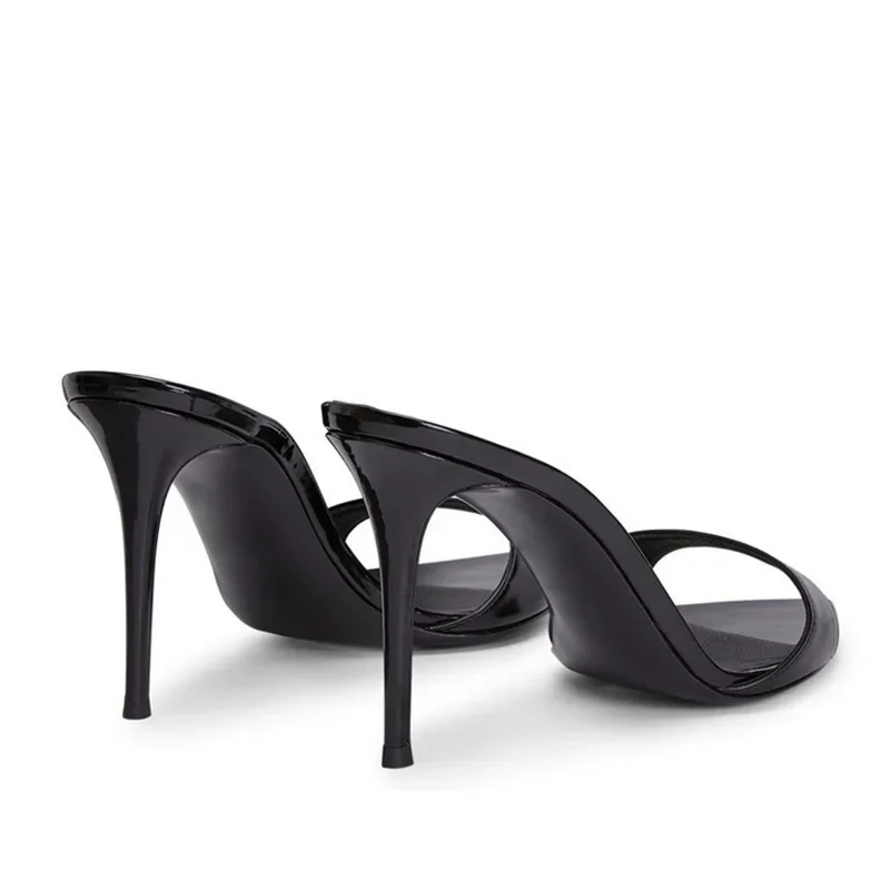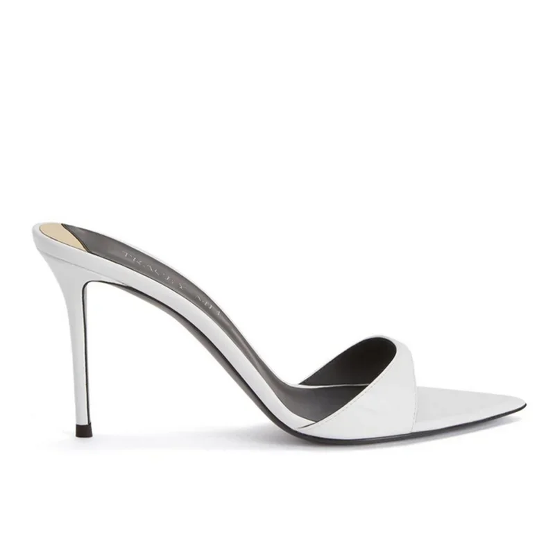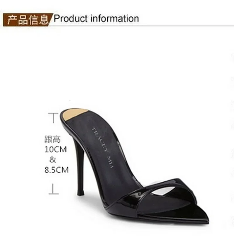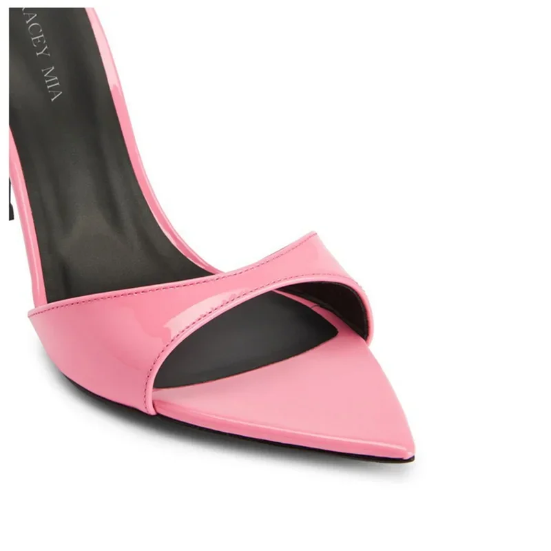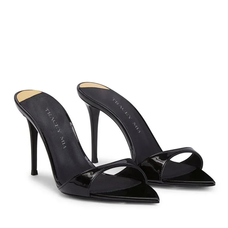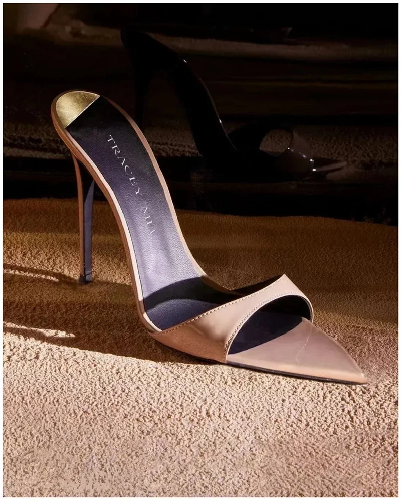 Color: Khaki, Shoe Size: 39 - Pointed Stiletto Heels Women Pumps Patent Leather 2024 Summer Designer Mule Sandals Elegant Sexy Office High Heels Women Shoes