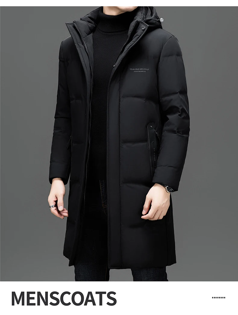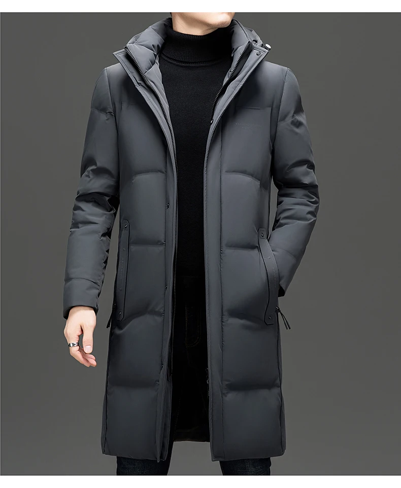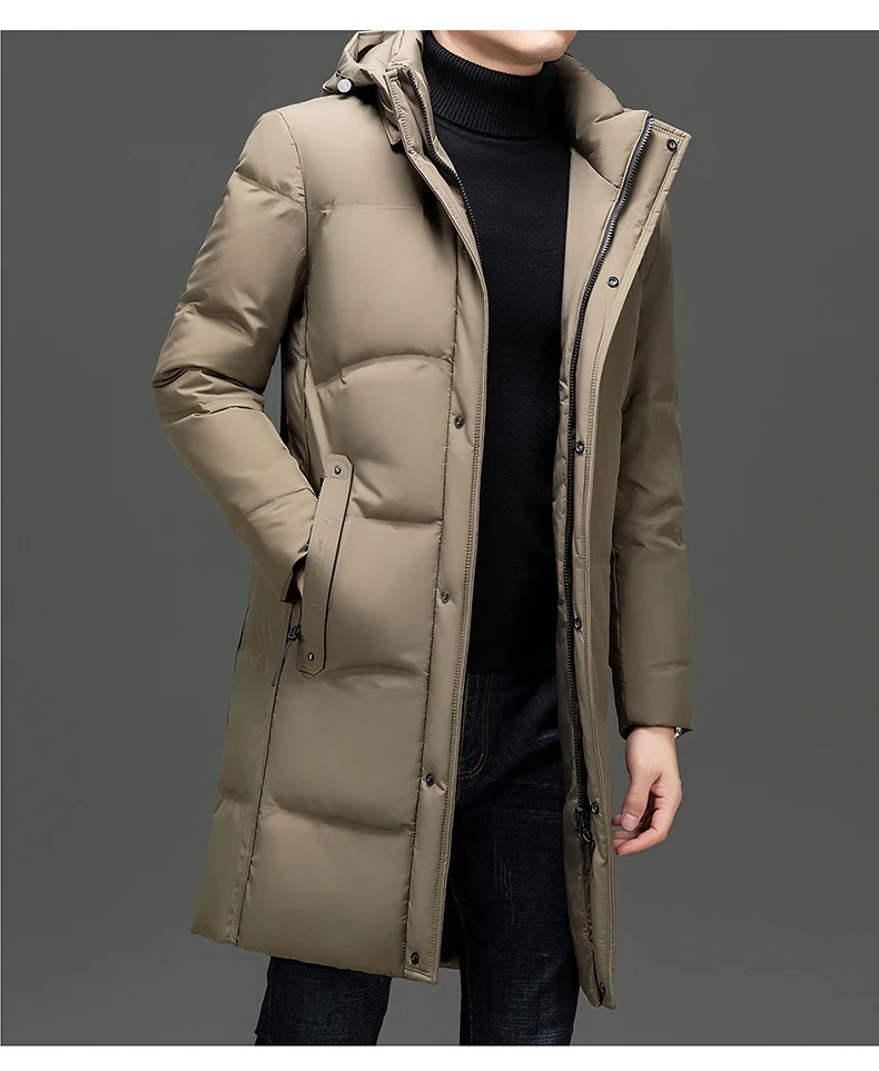 Color: Khaki, Size: L - 2024 New Men's Winter Down Jacket Long Knee-length Thickened Warm Duck Down Parka High-end Hooded Detachable Extremely Cold Coat
