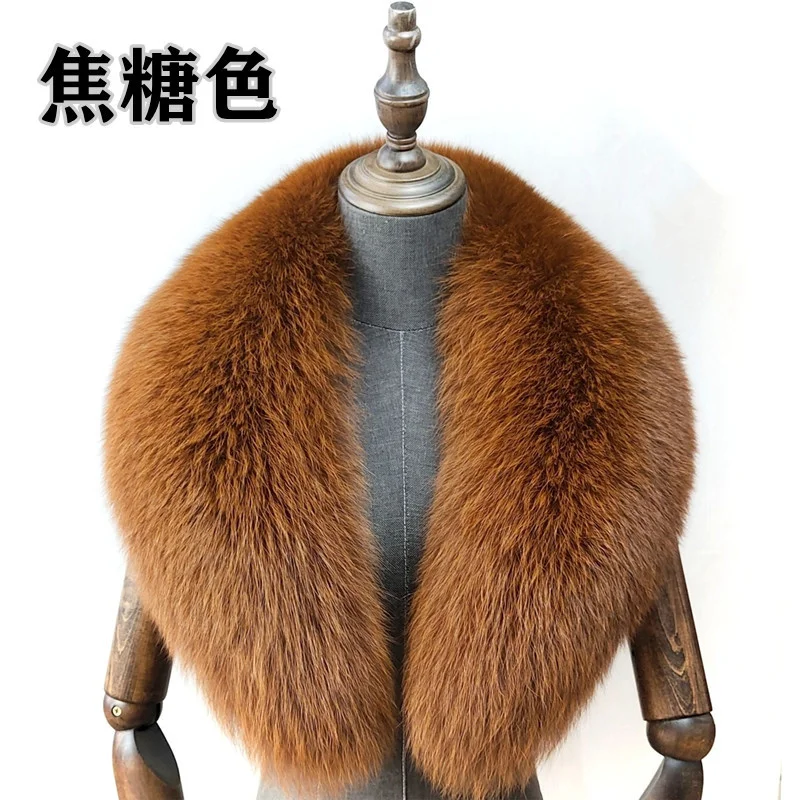 Fox Fur Collar 100% Real Fox Fur Scarf Straight Collar Natural Fur Gray Collar Large Size Neck Warmer Fur Scarf Shawls