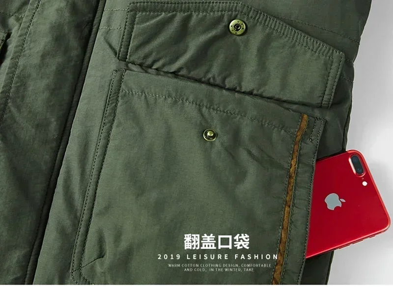 Color: Khaki, Size: XL - TELLHIGH 2024 Winter Parka Men Jacket Mens Plus Velvet Men Hooded Windbreaker Coats Men Casual Warm Jackets Coat Detachable Hat