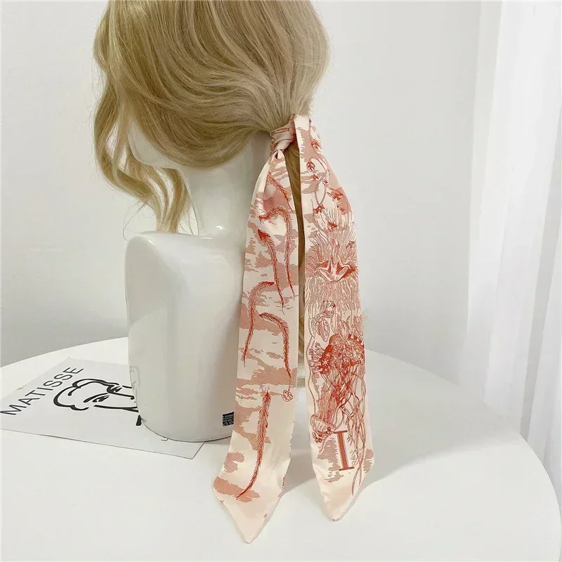 Color: Khaki, Size: XXS - Fashion Skinny Scarf Women Luxury letter Printing Tie Bag Handle Ribbon Hair Band Women's Headscarf New Lady Design Silk Scarves