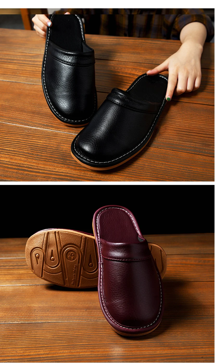 Color: Lavender, Shoe Size: 4.5 - Mens Bedroom Leather Slippers Unisex Black Home Shoes Big Size 47 48 Man's Slippers Indoor Comfy Males Slides Family Flats Shoes