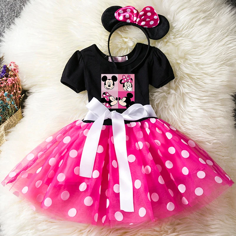 Color: Lavender, Size: XS - Mickey Minnie Mouse Cartoon Kids Short Sleeve Polka Dot Princess Dress Party Baby Girls Clothes Cosplay Costumes 1-6Y